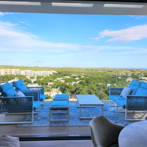 Discover this magnificent penthouse located on the first line of the Mediterranean Sea, in the prestigious area of Cabo Roig, one of the most sought-after residential zones on the Costa Blanca.~~The property offers 104 m² of built space, complemented by a private solarium and two spacious terraces, ideal to enjoy breathtaking panoramic sea views and the brightness provided by its privileged orientation.~~Set within a high-quality residential building, this penthouse benefits from access to a communal swimming pool, beautifully landscaped gardens, and all the comforts of an exclusive development. It also includes a private underground parking space and a storage room, ensuring maximum convenience.~~Its unbeatable seafront location directly on Cabo Roig's promenade allows easy walking access to a wide variety of services, restaurants, shops, and leisure options — the perfect balance between residential tranquillity and Mediterranean lifestyle.~~This property represents a unique opportunity for those seeking a dream home by the sea or a high-value investment in one of Orihuela Costa's most desirable areas.
