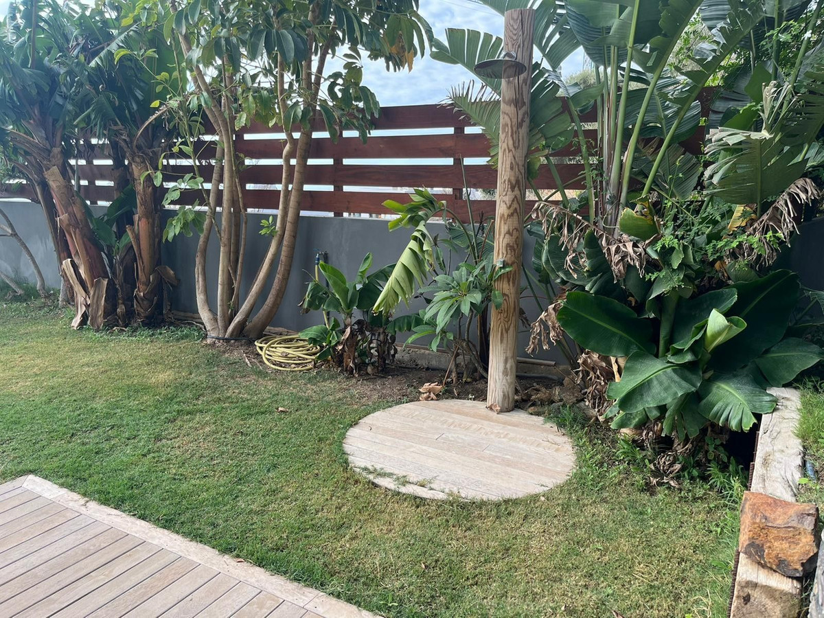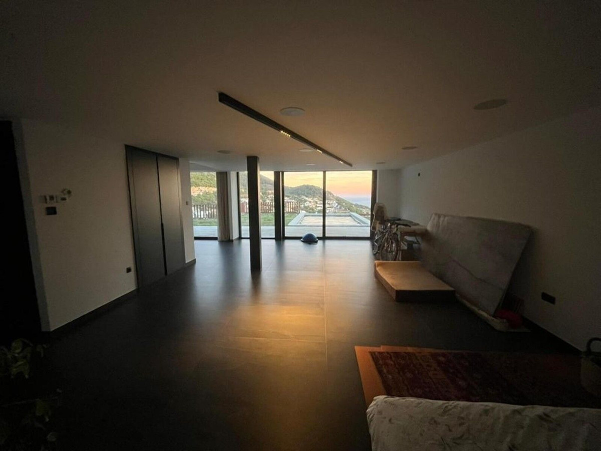 On the main floor, natural light floods the elegant open-plan living and dining area, seamlessly connected to a designer kitchen. Large glass doors open onto a 36 m² terrace, ideal for al fresco dining and enjoying the warm Mediterranean climate.