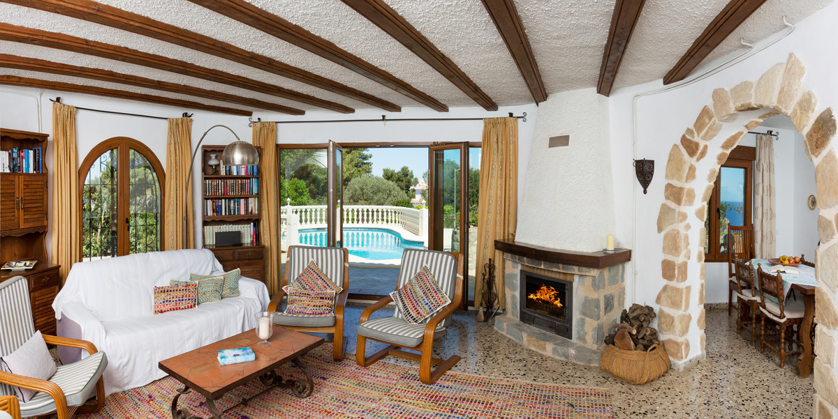 In the purest traditional style, in a quiet area of the beautiful coast of Jávea and with beautiful panoramic sea views, this house, full of possibilities, sits on a large, almost flat plot. Its elegant tower, staircase, and garden decorations with white balustrades and the typical wooden beams on the ceiling are so inviting.