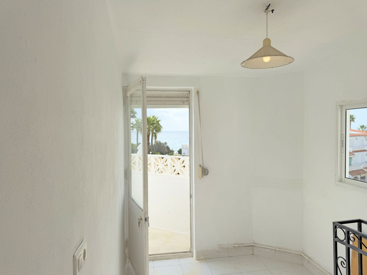 Located in an exclusive and peaceful beachfront development, this charming corner townhouse offers a privileged setting right by the sea. The community is pleasant and well-maintained, featuring beautiful landscaped gardens and a large communal swimming pool facing the sea, perfect for enjoying the Costa del Sol's wonderful climate.