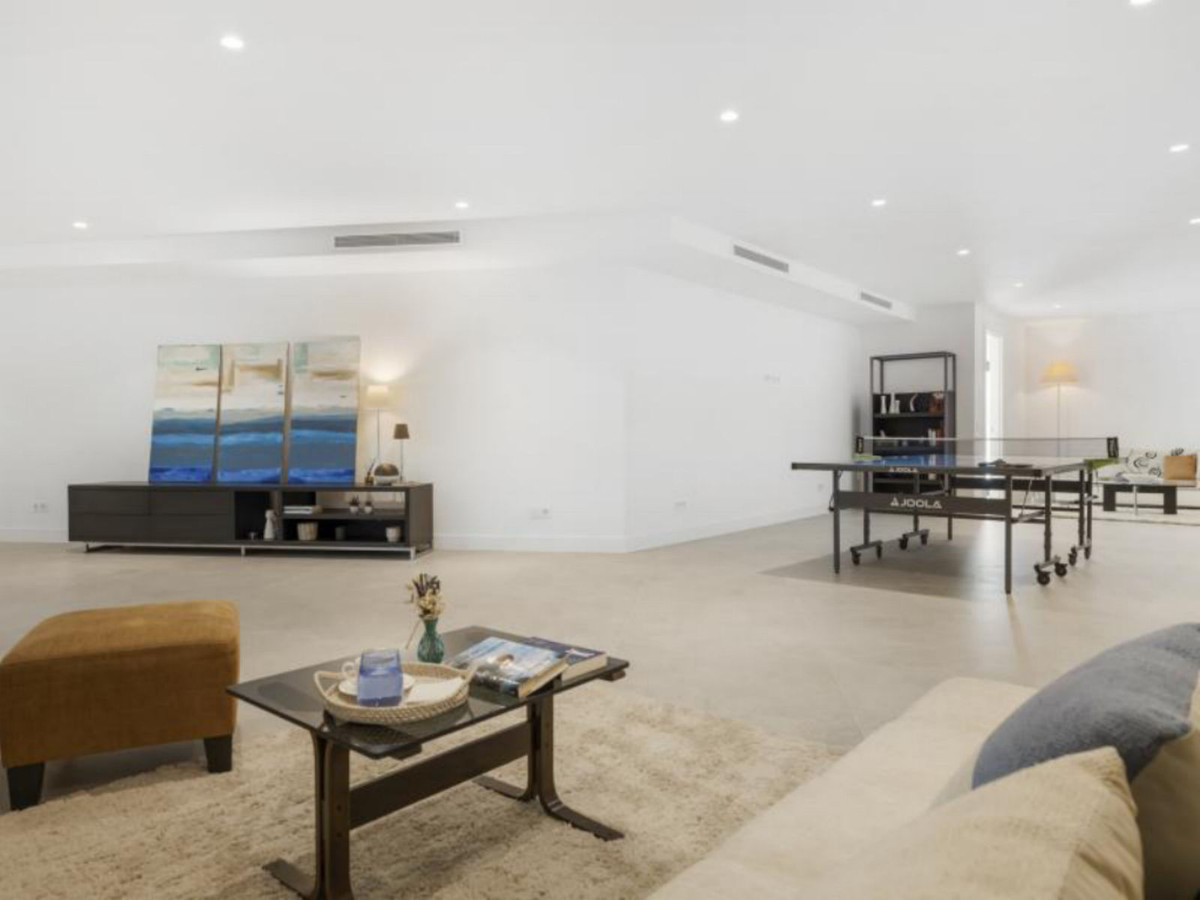 The property, located just a few meters from the beach and the local restaurants, features 5 double bedrooms with built-in wardrobes, 5 bathrooms, 1 guest toilet, a spacious living-dining room with a fireplace and direct access to the pool area, a fully equipped open-plan kitchen, air conditioning throughout, and tiled floors.