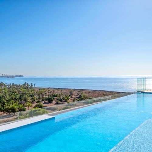 This stylish first-floor apartment offers contemporary living in the sought-after Villamartin Gardens development, with beautiful views overlooking the communal pool. The property features: 2 spacious bedrooms and 2 modern bathrooms, including one en suite. A bright open-plan American kitchen fully equipped with appliances. A separate utility/workshop area with washing machine. Open living and dining area with direct access to the private terrace. Additional comforts include: Fully furnished and move-in ready. Elevator access, private underground parking, and a storage room. Set within a secure, well-maintained complex with communal gardens and pools. Perfectly located: Only 5 minutes from Zenia Boulevard shopping center. Just 8 minutes from the beaches of Orihuela Costa. Close to golf courses, restaurants, and all amenities. This apartment is the ideal choice for permanent living, a holiday retreat, or an investment.