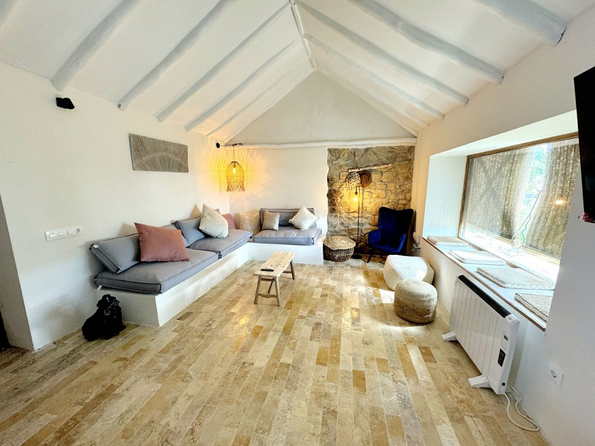 • On the upper floor, a cozy loft area with two beds, ideal for guests or a quiet reading space