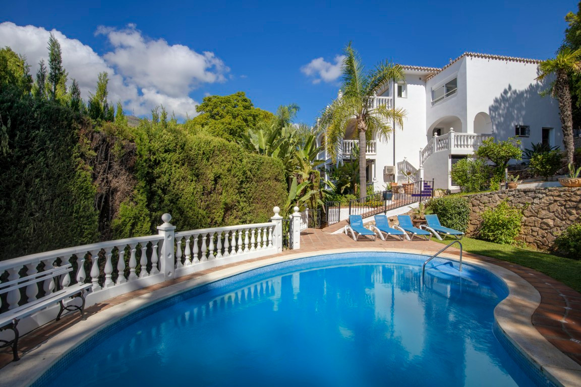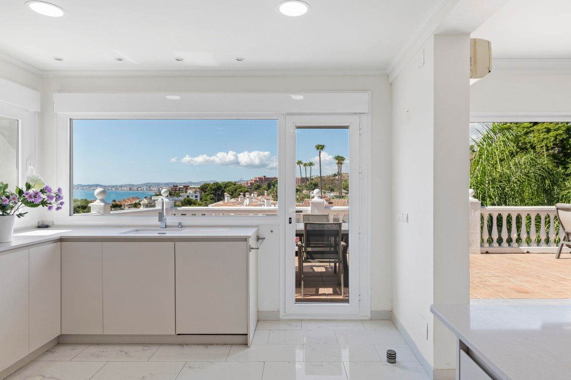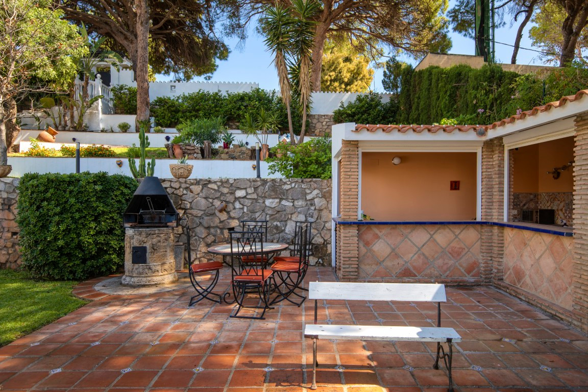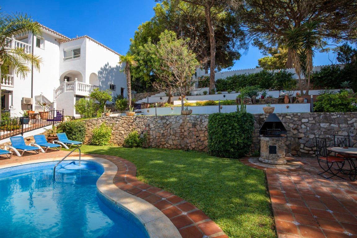 Just a five-minute walk from the sea and offering breathtaking, unobstructed views of the Mediterranean, this villa in Torremuelle, Benalmádena, is much more than a property, it\'s an invitation to live surrounded by light, tranquility, and nature.Set on a generous 1,328 m2 plot, with a total built area of 413 m2 distributed over three floors, the villa provides a solid foundation with outstanding potential for a full renovation that could truly enhance its value and character. While the home is in good condition and ready to move into, it presents a fantastic opportunity for those looking to create a bespoke residence in one of the most sought-after coastal settings.The villa features six bedrooms and four bathrooms, along with a spacious and bright living room with a cozy fireplace and large windows that perfectly frame the sea views. The kitchen has been recently renovated, is fully equipped, and opens directly onto a terrace where the Mediterranean takes center stage. Additional spaces include a gym area, wine cellar, and several sun-drenched terraces that can be adapted to suit any lifestyle or family need.The exterior is a true Mediterranean retreat, with a lush, mature garden and water features surrounding a large private pool, complete with shower area, outdoor bathroom, and a fully equipped summer kitchen with BBQ, ideal for entertaining and enjoying the Costa del Sol climate. The property also includes a covered garage and additional on-site parking.The location is simply unbeatable. Nestled in a peaceful residential area, it's exceptionally well connected, just minutes from local bus stops and the Torremuelle train station, which offers easy access to Málaga and Fuengirola. Only a short 3-minute drive to restaurants, cafés, beach clubs, and supermarkets like Lidl and Mercadona. Sports lovers will appreciate the proximity to the Torremuelle Racket Center, offering tennis and paddle courts just 6 minutes away, as well as the prestigious Torrequebrada Golf Club only 10 minutes from the villa. Málaga International Airport is conveniently located just 20 minutes away by car.A home with soul, spectacular views, and incredible potential to personalize, without giving up the comfort of being move-in ready. Whether you\'re looking for a primary residence, a holiday home, or a high-potential investment in one of the most desirable areas of the Costa del Sol, this villa is a must-see. Contact for private tour.The abbreviated information document is available to you. Expenses: Taxes (ITP or VAT+AJD) + Notarial and registration expenses.ALA..