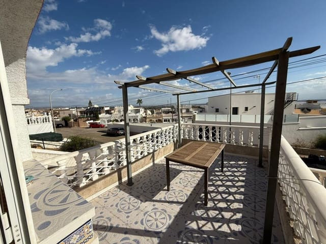 Welcome to this beautiful Mediterranean home, ideally located near the famous Pink Lake of Torrevieja on the Costa Blanca South. This property is the perfect combination of traditional Spanish charm and modern comfort, making it ideal as a permanent residence, holiday retreat, or investment opportunity. Property Details Bedrooms: 3 Bathrooms: 2 (including one ensuite) Living space: Bright and spacious with direct access to outdoor areas Kitchen: Separate, fully equipped kitchen with modern appliances Outdoor space: Private swimming pool with jet stream, sun terraces, and low-maintenance Mediterranean garden Layout On the ground floor, you will find a cozy living room filled with natural light, a separate fully equipped kitchen, two comfortable bedrooms, and a modern bathroom. The upper floor hosts the master bedroom with an ensuite bathroom and direct access to a large private terrace offering spectacular views of the Pink Lake of Torrevieja – a unique and unforgettable feature. Outdoor Living The exterior of this villa is designed for relaxation and enjoyment of the Mediterranean climate. The private swimming pool with jet stream invites you to cool off on warm days, while the spacious terraces provide plenty of room for sunbathing, dining, and entertaining. The garden is easy to maintain with a selection of Mediterranean plants, ensuring year-round beauty without high upkeep. Location Situated in a quiet and well-connected area, this property is only a short drive from: Beautiful sandy beaches Shops, restaurants, and local amenities Several golf courses Alicante Airport (approx. 40 minutes)