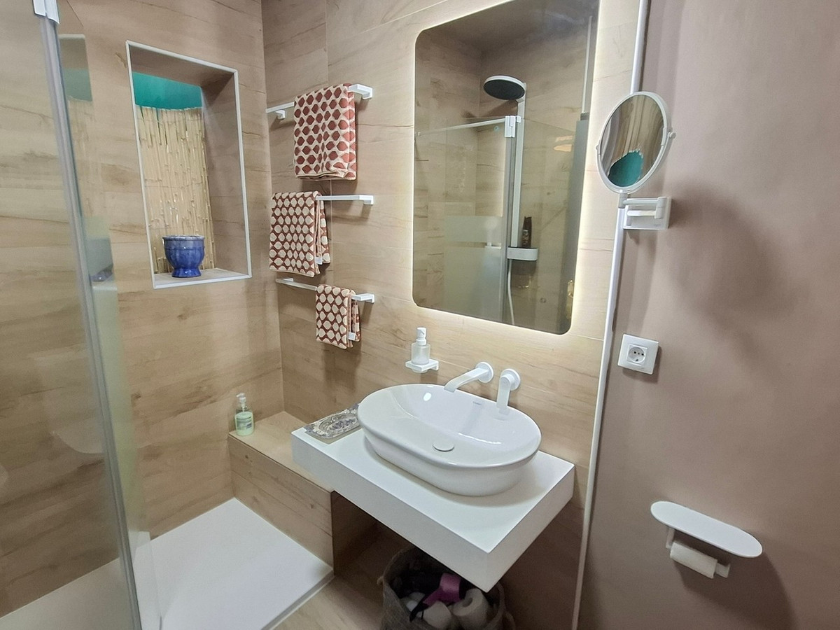 From this level, a staircase leads up to the private roof terrace, an impressive space perfect for relaxing, dining or entertaining while enjoying the panoramic views over the village, the mountains and the Mediterranean coastline.
