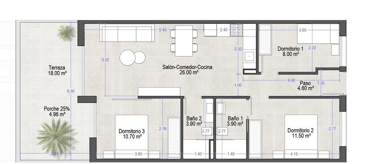 Its location is one of its greatest attractions. Just 35 km away is the city of Cartagena, with its historic port and Roman heritage, while the city of Murcia is about 47 km away, offering the cultural and commercial life of a large city. It is also easily connected to Torrevieja (about 35 km away) and the tourist area of Orihuela Costa (about 40 km away).