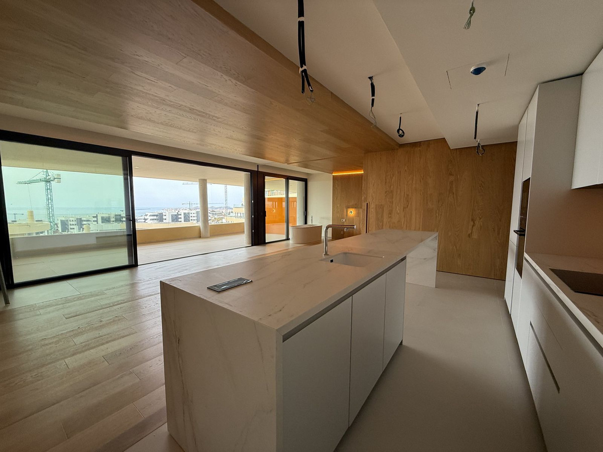 Be among the very first to reserve this stunning brand-new, just-completed 3-bed, 2-bath apartment. Spread across 140 m² built, the open-plan living and kitchen area is bright and spacious, with floor-to-ceiling sliding glass doors that seamlessly extend your living space onto the elegant terrace. From here — and from the living room itself — you'll enjoy beautiful views of the community pool and partial sea views, creating a serene, sunlit atmosphere throughout the day. Included are 2 corner-space parking bays, a private storage unit, and a pre-installed EV car charger — everything you need to move in with ease.