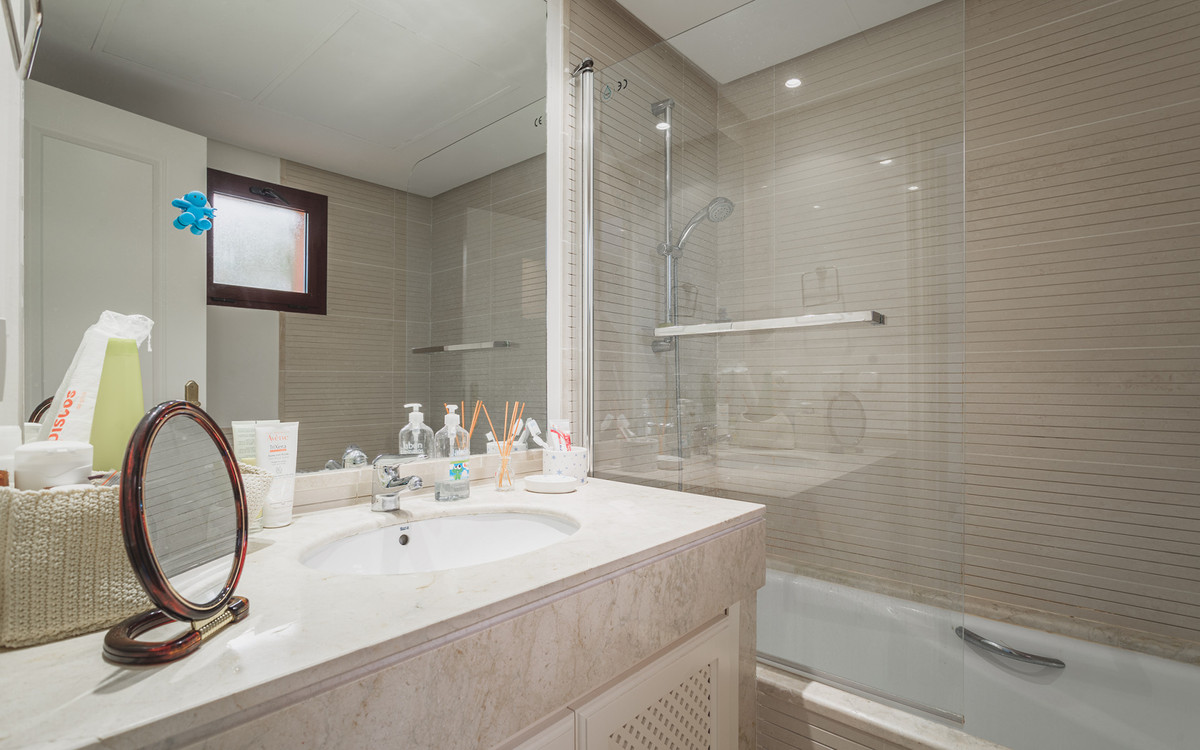 Perched just below the Monte Halcones commercial centre in the quiet Puerto del Almendro urbanisation, this spacious first-floor apartment offers an exceptional blend of privacy, panoramic sea views, and refined comfort. Located within a secure, impeccably maintained gated community, the property enjoys total tranquillity while being just a 5-minute drive from the beach and San Pedro, and a short stroll to local shops, restaurants, and cafés.