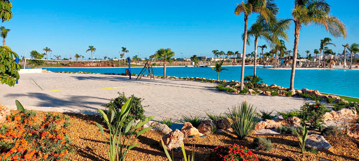 The residential complex itself is a truly unique setting, built around a spectacular turquoise artificial lake, surrounded by private beaches, lush green areas, sports facilities, a mini golf course, and a modern clubhouse with restaurant and bar.