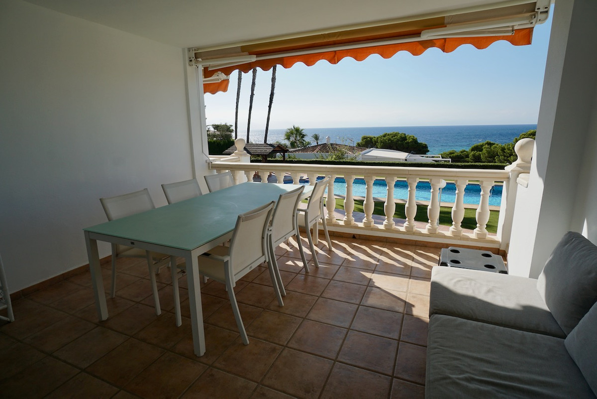 A beautifully presented first-line duplex apartment located directly in front of Platgetes Beach in Moraira, offering spectacular sea views and immediate access to the coastline. This bright and spacious property is part of the sought-after Residencial Platgetes - a secure complex with a communal garden, large swimming pool, and underground parking.