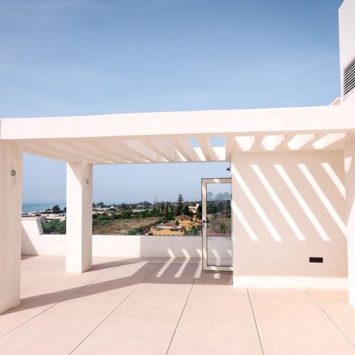 This modern 2 bedroom, 2 bathroom apartment is located in the **Ocean Hills** urbanization in Estepona. With stunning views of the surrounding mountains and hills, the apartment combines contemporary design with a serene natural setting. The spacious living areas are light and airy, perfect for enjoying the peaceful surroundings.