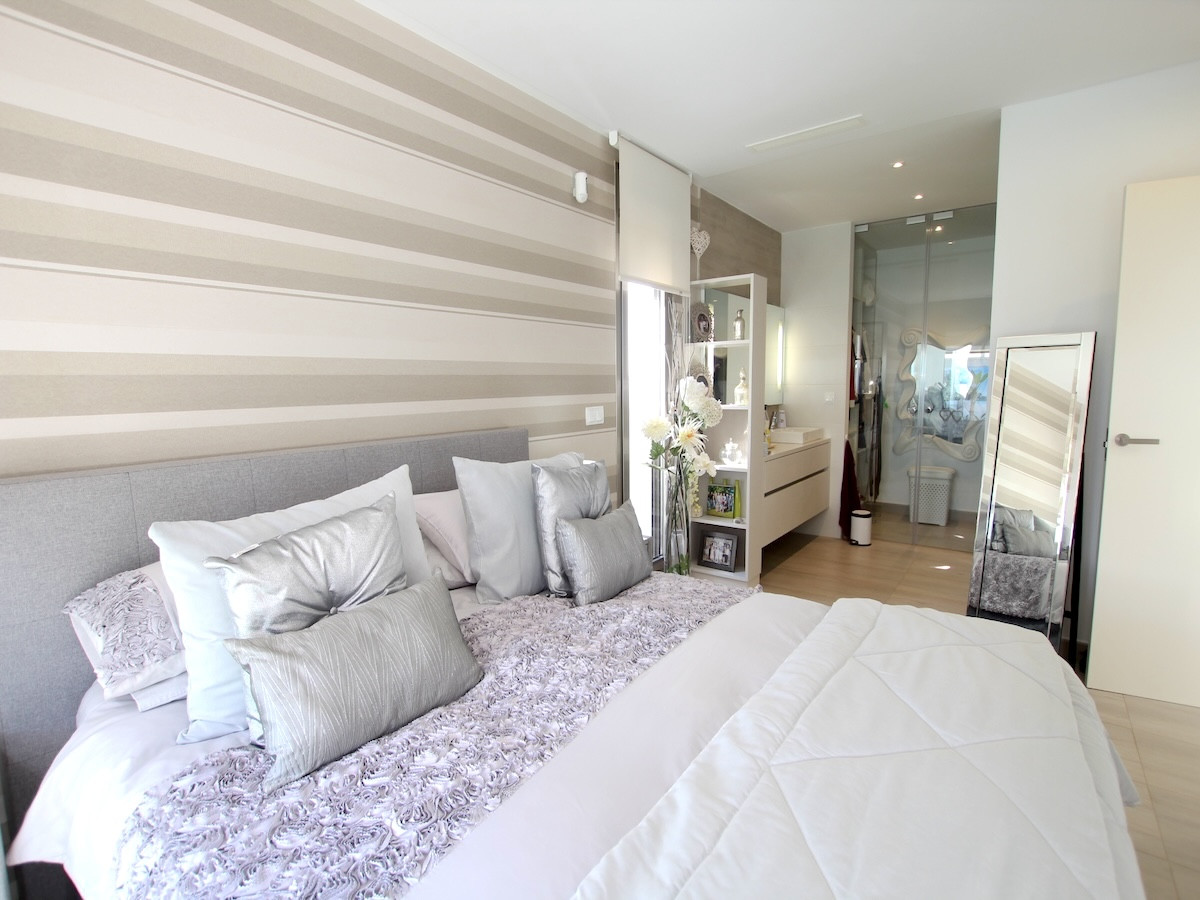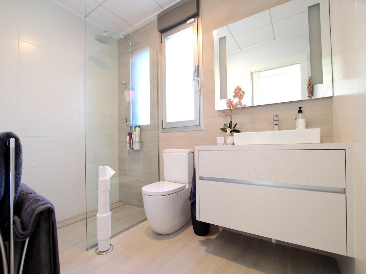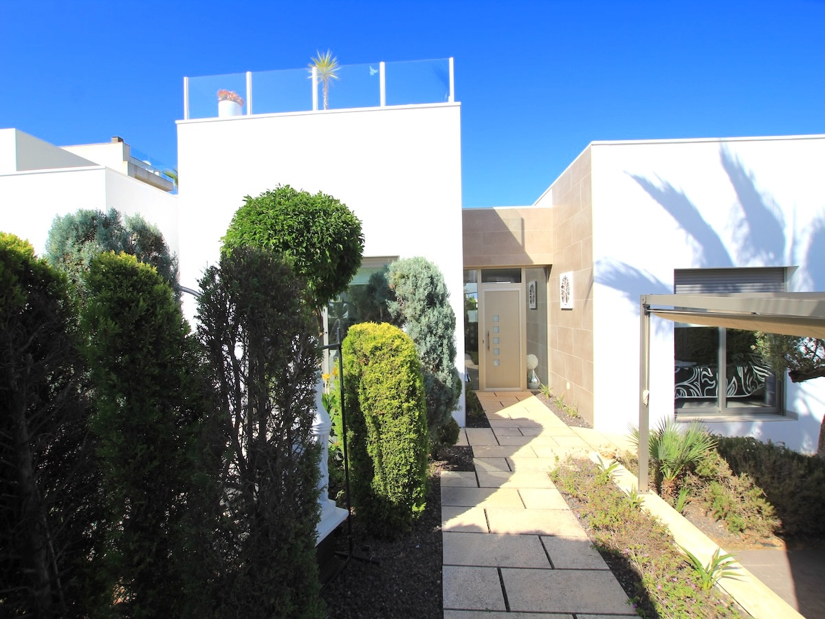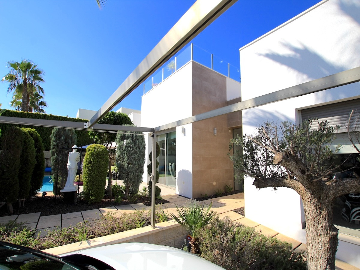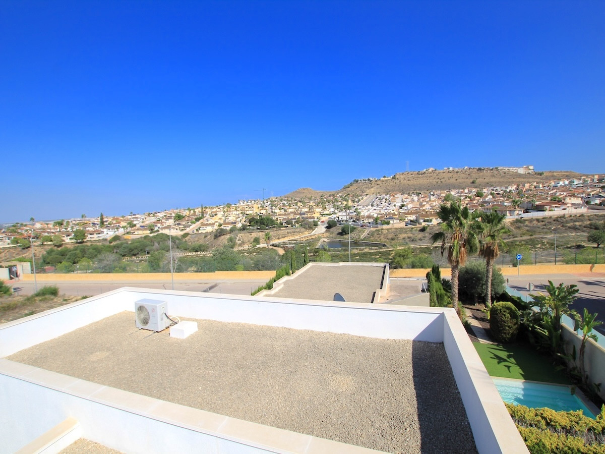 Occupying a larger-than-average plot compared to many contemporary villas in the area, the property has been tastefully landscaped to create a private and tranquil retreat. The outdoor space features a heated swimming pool, off-road parking, established gardens, and a variety of sunny and shaded areas ideal for relaxation and entertaining. A sun-drenched rooftop solarium provides the perfect spot to unwind while enjoying panoramic views of the surrounding area.