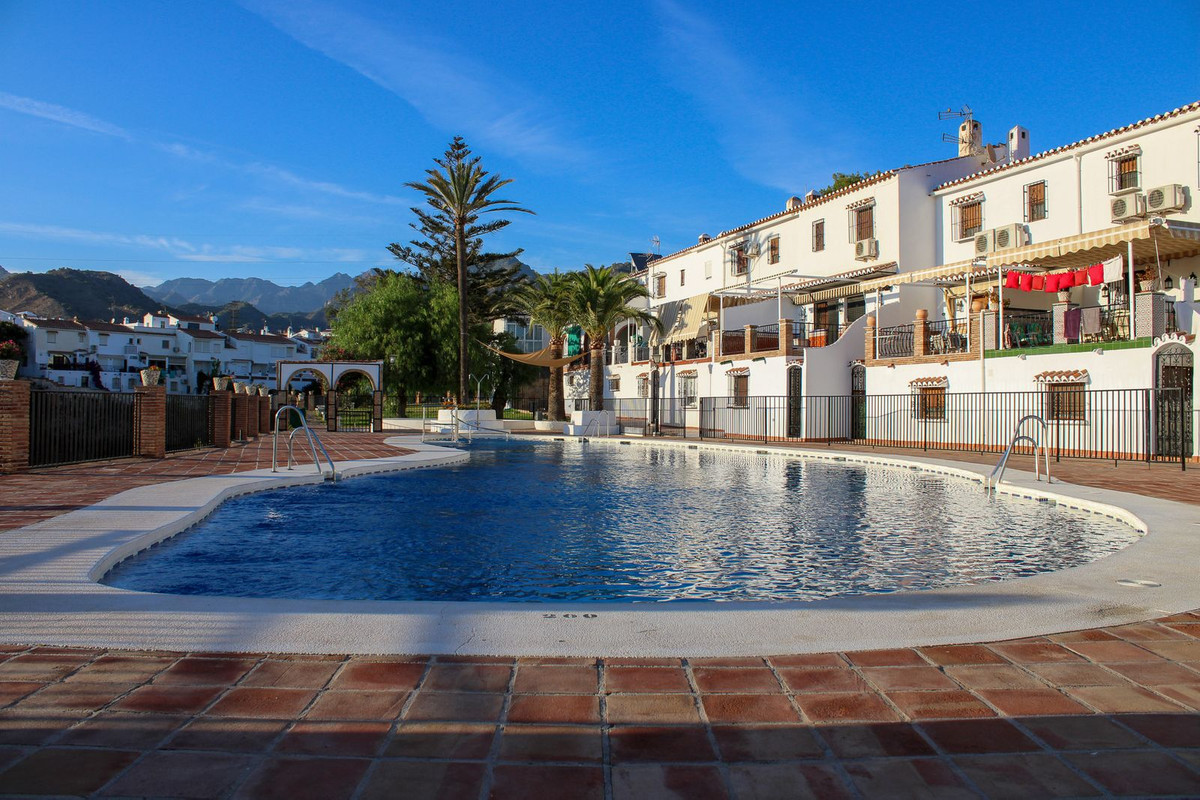 Well-maintained townhouse in the urbanization Almijara 1 in Nerja, with 3 terraces, 3 bedrooms, 1 bathroom and a toilet. There is a communal pool in the area, the nearest supermarket is only 5 minutes walk away. It takes 15 minutes to Playa Burriana and 20 minutes to Balcon de Europa. The house is sold fully furnished, just bring your bags and move in.