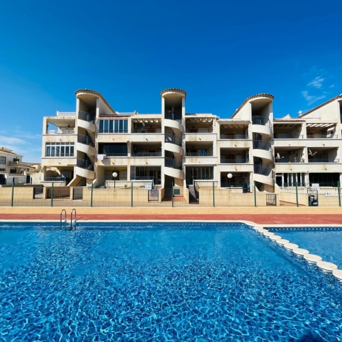 Modern & Move-In Ready Apartment in Villamartin – Costa Blanca South. . Located in the highly sought-after area of Villamartin on the Costa Blanca South, this immaculately presented second-floor apartment with two bedrooms and two bathrooms offers a luxurious living experience in a central location.. . The property is part of the popular Residential Valentino Golf 3, a modern complex featuring a contemporary design, spacious terraces, and a smart layout that ensures natural light and comfort all year round.. . The communal facilities include a large swimming pool with jacuzzi, extensive green areas, a playground, and a gym.. . Features of Valentino Golf 3. . Close to the town centre, golf courses and the beach. . Spacious terraces. . Swimming pool and jacuzzi. . Gym and playground. . Private parking for each apartment. . Layout & Comfort. . Two spacious bedrooms with built-in wardrobes. . Modern open kitchen, including dishwasher and washing machine in the utility area on the balcony. . Living room with direct access to a sunny terrace overlooking the communal pool. . Extras. . Central air conditioning and heating. . Fully furnished and equipped (excluding personal items). . Ideally located just a 15-minute walk from the lively Villamartin Plaza, offering a wide choice of bars and restaurants. The charming Villamartin clubhouse, decorated with traditional Spanish tiles and featuring a sun terrace, is also within easy walking distance.. . Within a short drive, you'll reach the impressive Zenia Boulevard shopping centre and the beautiful sandy beaches of Orihuela Costa, including La Zenia, Cabo Roig, Punta Prima and Playa Flamenca.. . Golf lovers will appreciate the proximity to the top courses Villamartin, Campoamor, Las Ramblas and Las Colinas, while families can enjoy a fun day out at Greenlands Adventure Golf, located nearby.