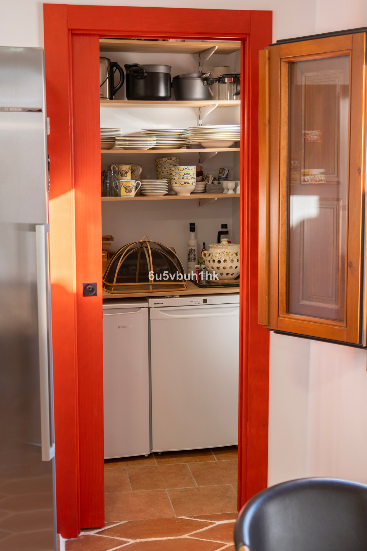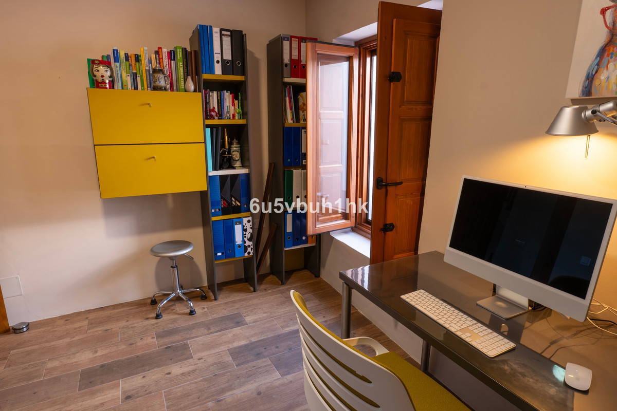 Inside, the entrance hall retains its original mud-brick walls coated with natural mortar, preserving freshness and structural strength. The kitchen includes a traditional oven-fireplace, separate pantry, window to the courtyard, and top-brand appliances.