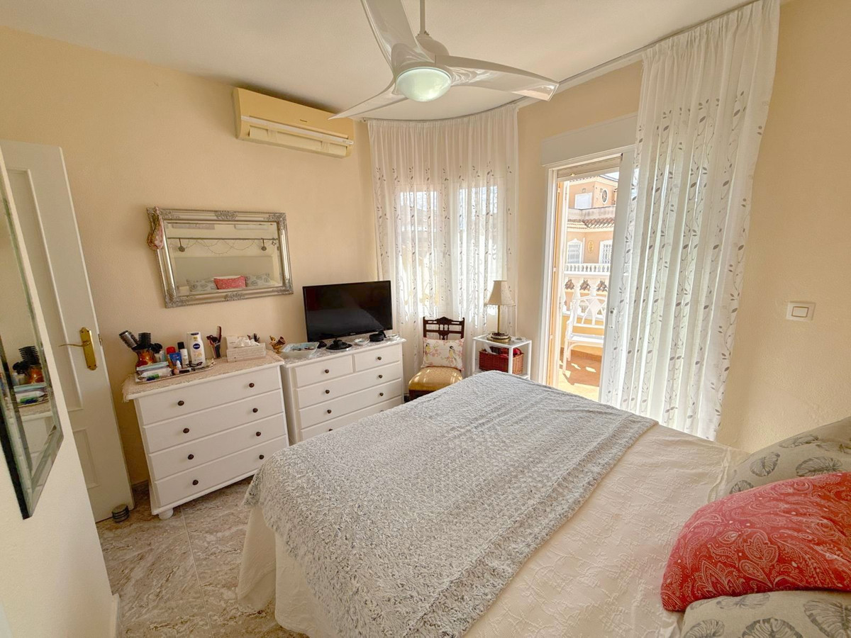 This is a fantastic south facing tonwhouse in La Regia which is a 10 minute walk to La Zenia and a little less to the Cabo Roig strip, the garden is south facing with sun all day and the property has a sun room for the winter months. The property has a lovely lounge with an american open plan kitchen with a lovely dining area to the rear and the downstairs also has a WC toilet. The first floor has two double bedrooms and a full family bathroom with a walk in shower and off the main bedroom you have a decent size balcony. This townhouse is in a fantastic location and is walking distance to Zenia Boulevard and Cabo Roig strip and also Cabo Roig beach. The Property is also part of a beautiful community with a lovely pool area and gardens.