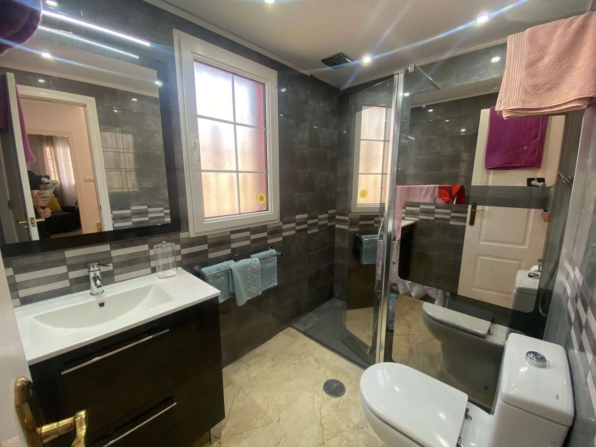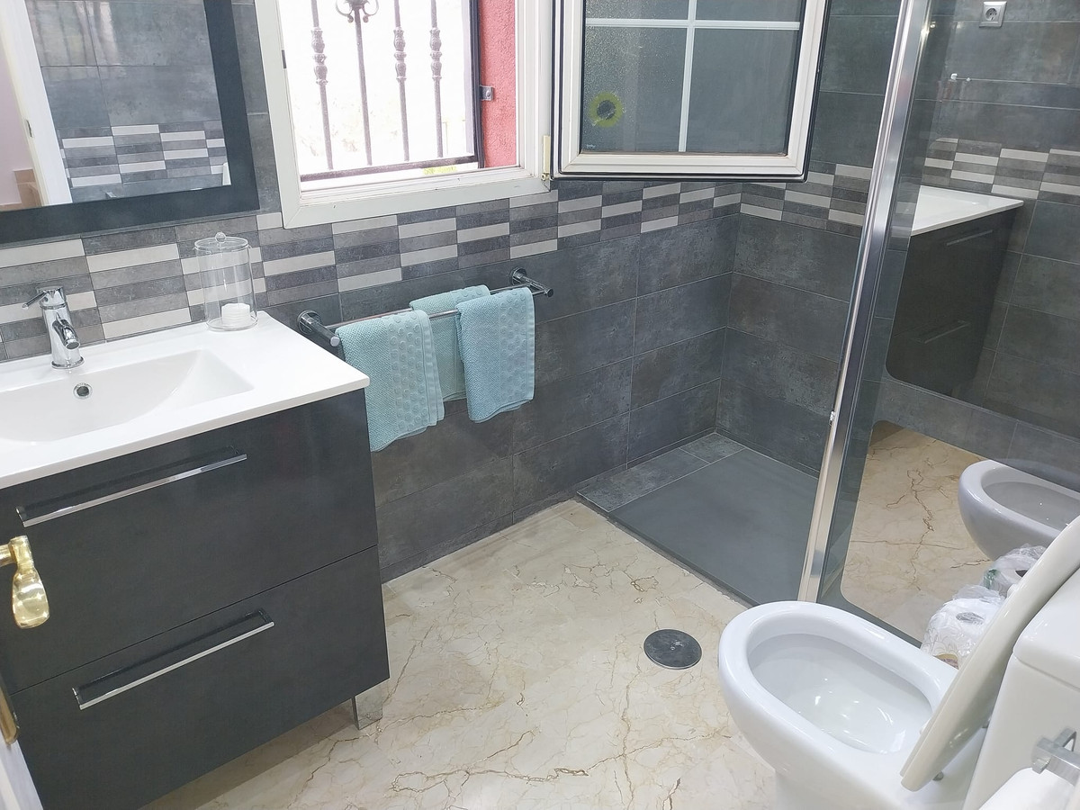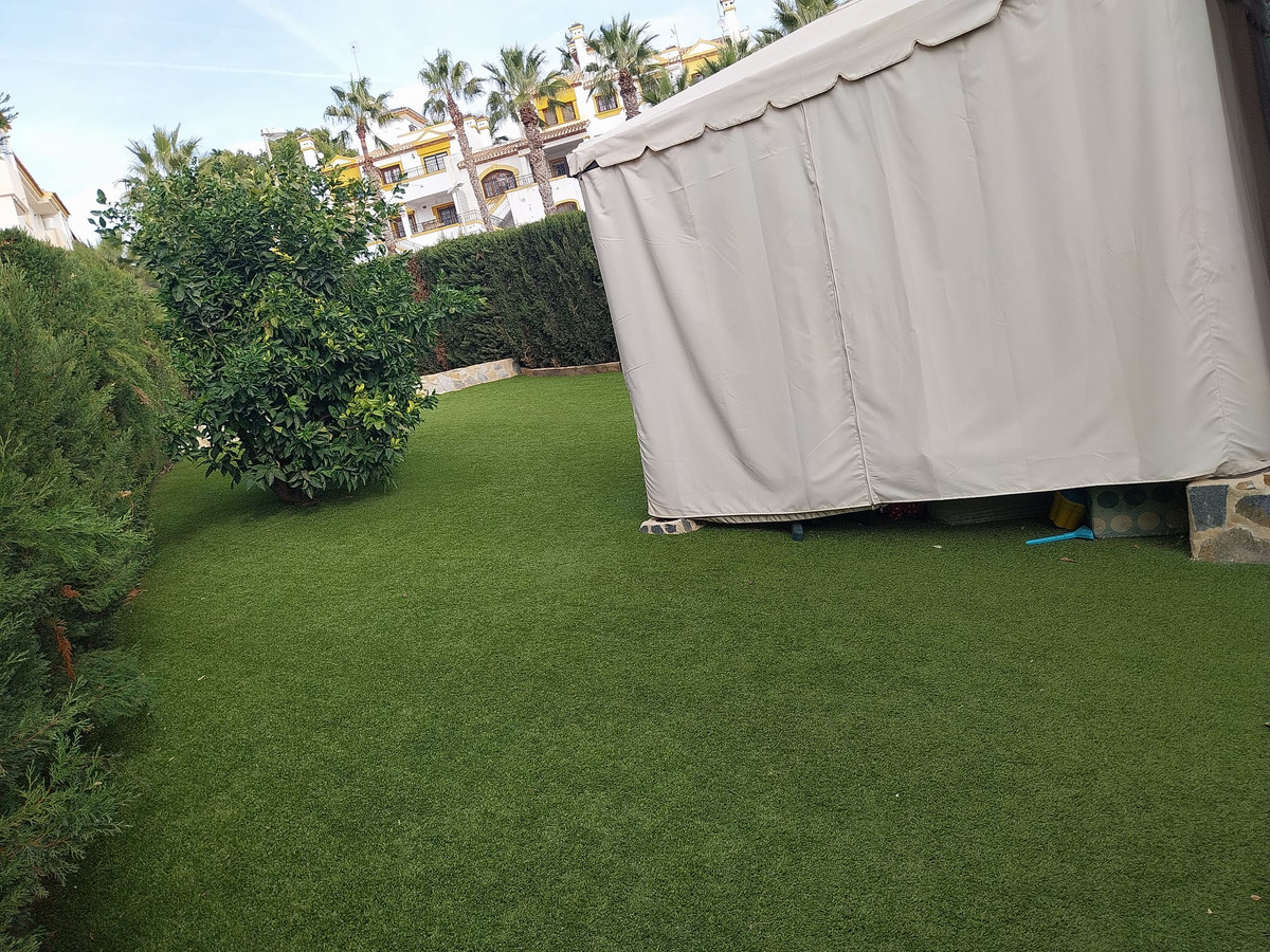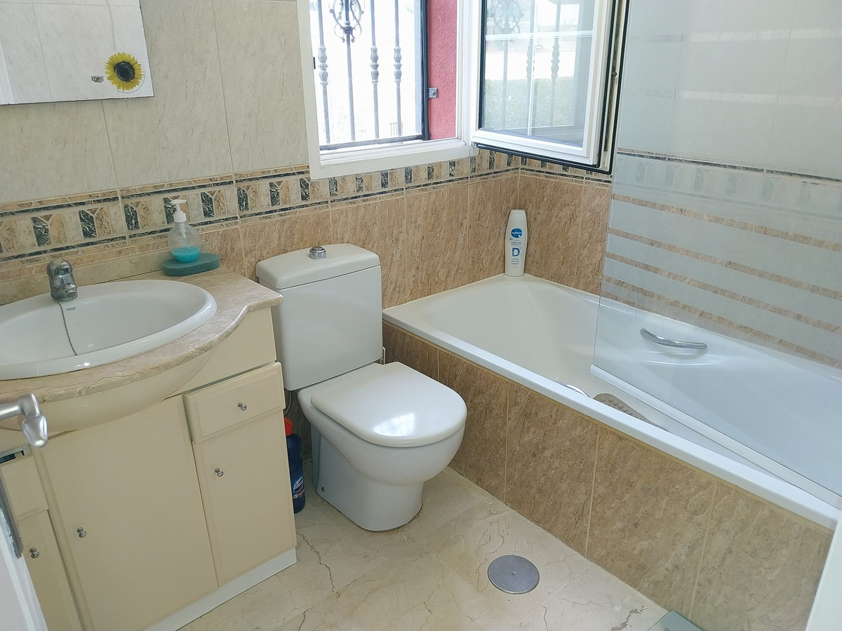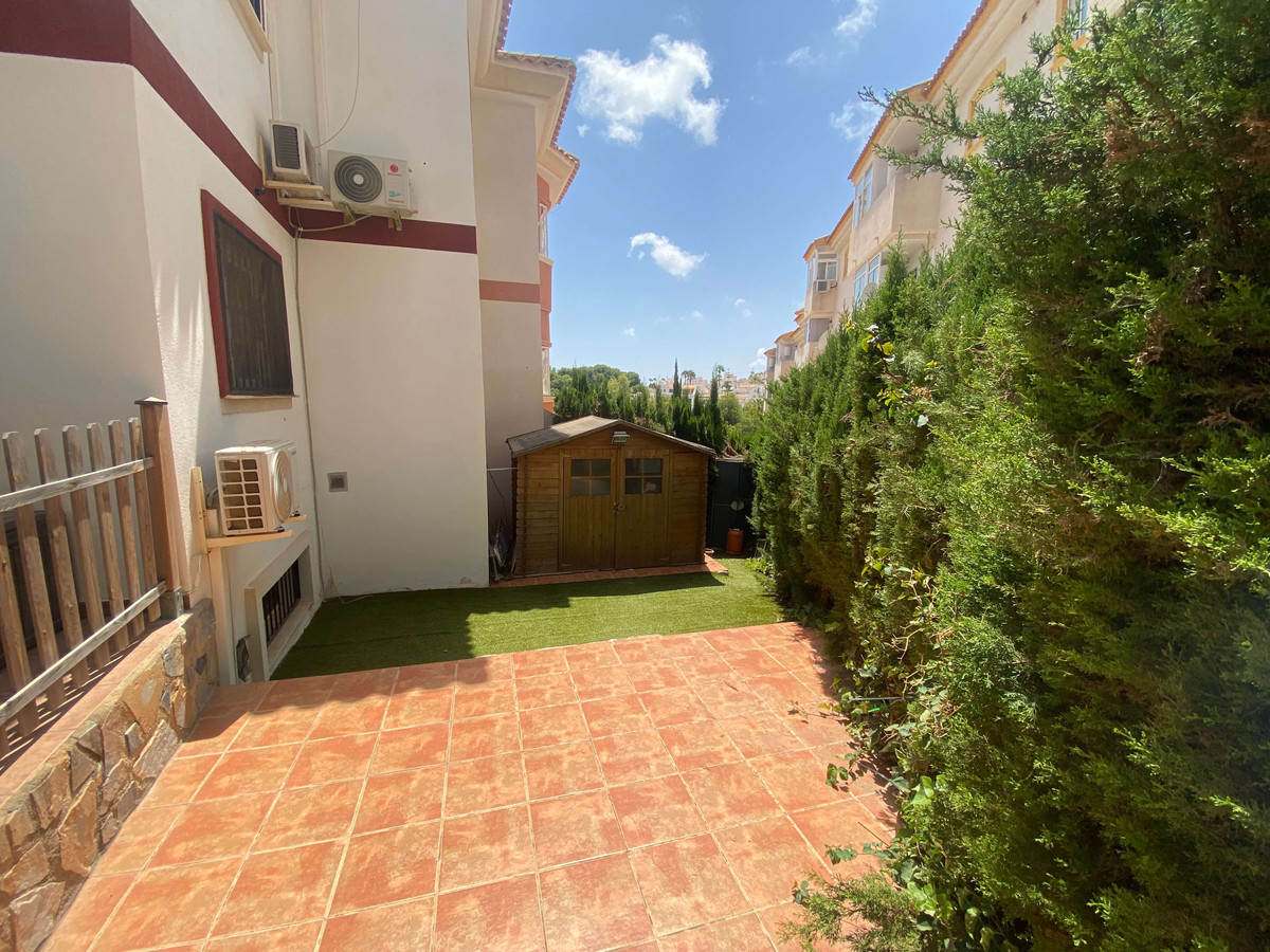 This is a fantastic semi detached villa in the heart of Villamartin. This property has been recently renovated to a high standard and comes complete with an amazing underbuild which is an open plan lounge and kitchen dining area with a walk in shower room. This semi detached has a fantastic large corner garden which comes complete whith a large wooden outhouse. On entry to this villa you will access a double door entry and has an alarm system, the lounge is a fantastic lounge and dining area with a wc on this level plus a fitted kitchen which is seperate, there are sliding doors seperating the lounge to the second level where you have 3 double bedrooms with a full bathroom and also 1 bedroom has an en-suite plus you also have internal access to a private solarium. This is a proper family home and must be seen to understand its full potential.