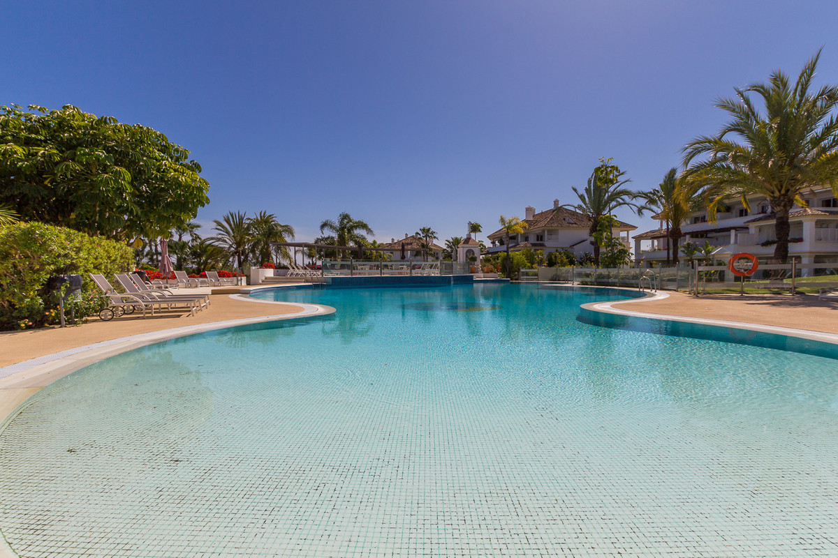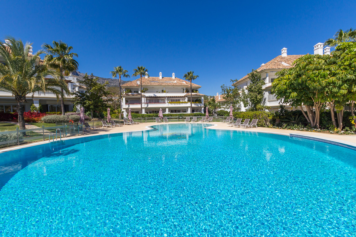 Located in the exclusive Monte Paraiso urbanisation on Marbella's Golden Mile, this stunning south-facing apartment offers the perfect blend of luxury, privacy, and convenience. Set within a gated community with 24-hour security, residents enjoy beautifully landscaped tropical gardens, five swimming pools (including an indoor heated one), a gym, saunas, squash court, children's play area, and a summer café. Now completely renovated, the apartment showcases refined modern interiors with high-end finishes, bespoke carpentry, Miele appliances, underfloor heating, and zoned air conditioning. Its elegant open-plan layout flows seamlessly onto a spacious sunny terrace and semi-private garden, creating an ideal space for relaxation and entertaining. Offered fully furnished, this exceptional home will be ready to move into in July 2025—just moments from the Puente Romano, the beach, and Marbella's finest amenities.