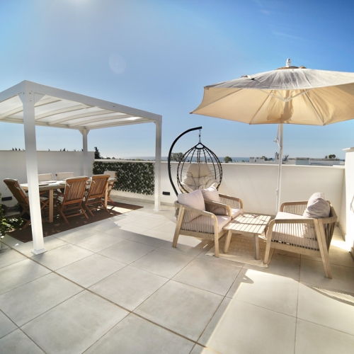 This beautifully presented three-bedroom townhouse is located within one of Estepona's most exclusive gated communities, offering a perfect balance of style, comfort, and convenience. Impeccably maintained and sold fully furnished, this key-ready home combines refined interiors with exceptional functionality.