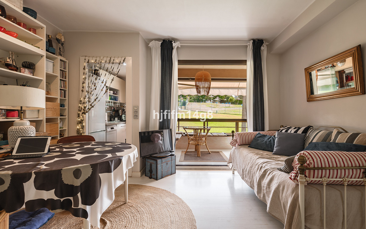 A charming one-bedroom apartment for sale in Torres de Aloha, located in the heart of Nueva Andalucía, Marbella. This beautiful gated community offers 24-hour security, a welcoming reception area, and a stunning swimming pool set amid lush, well-maintained gardens. Ideally situated within walking distance of popular restaurants, cafés, a supermarket, tennis clubs, and some of Marbella's most prestigious golf courses, this property combines comfort, convenience, and Mediterranean charm.