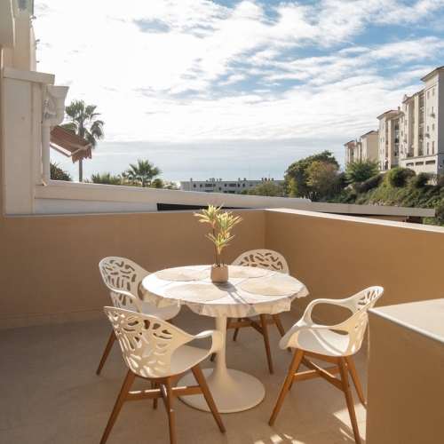 Fantastic TOP FLOOR APARTMENT with beautiful SEA VIEWS, located in the heart of Arroyo de la Miel (Benalmádena) and next to the prestigious PARQUE DE LA PALOMA. Great location walking distance to all amenities. In addition, the property is located just 100 metres from the Sports Palace, where you will find a fitness room, functional and core area, heated indoor pool and the only ice rink in Andalusia.