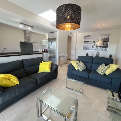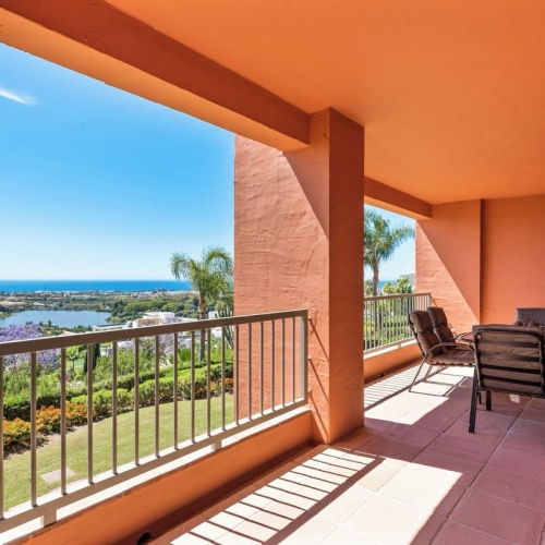 Nestled within the prestigious and secure Los Flamingos Golf Resort in Benahavís, this stunning first-floor apartment in the exclusive Royal Flamingos development offers a unique opportunity to experience the very best of luxury Mediterranean living. Fully furnished and immaculately presented, this exceptional residence combines elegant design, unmatched panoramic views, and first-class resort amenities, making it an outstanding choice for discerning buyers seeking a serene second home or a profitable investment in one of the Costa del Sol's most sought-after locations. Positioned in an elevated setting, the apartment captures truly breathtaking vistas over the manicured fairways of Los Flamingos Golf Club, a tranquil natural lake, and the glittering Mediterranean Sea, with the African coastline visible on clear days. A generous private terrace provides the perfect space to enjoy this exceptional scenery — whether for morning coffee, sunset aperitifs, or sophisticated alfresco dining. The interior is designed for modern comfort and effortless elegance. It features two spacious bedrooms and two beautifully appointed bathrooms, a bright open-plan living and dining area with direct terrace access, and a fully fitted kitchen with high-quality appliances and a separate utility room. Abundant natural light flows throughout the property, enhancing its warm and welcoming atmosphere. Practicality meets luxury with an underground parking space and a private storage room included. Residents of Royal Flamingos enjoy the security and tranquility of a 24-hour gated community, complemented by superb leisure facilities including three communal swimming pools, tennis and paddle courts, and a dedicated children's play area. Owners also benefit from privileged access to the world-renowned Anantara Villa Padierna Palace Hotel, featuring a five-star spa and wellness center, fine dining restaurants, a stylish beach club with complimentary shuttle service, and three championship 18-hole golf courses. Perfectly positioned just 15 minutes from Estepona, 15 minutes from Puerto Banús, 20 minutes from Marbella, and 45 minutes from Málaga Airport, this exceptional property is also close to international schools, high-end shopping, fine dining, and all essential services. Combining panoramic views, elegant interiors, exclusive amenities, and an unbeatable location, this apartment represents a rare opportunity to own a piece of paradise in one of southern Spain's most prestigious residential resorts. Whether as a luxurious personal retreat or a high-yield rental investment, this is a property that truly stands out.