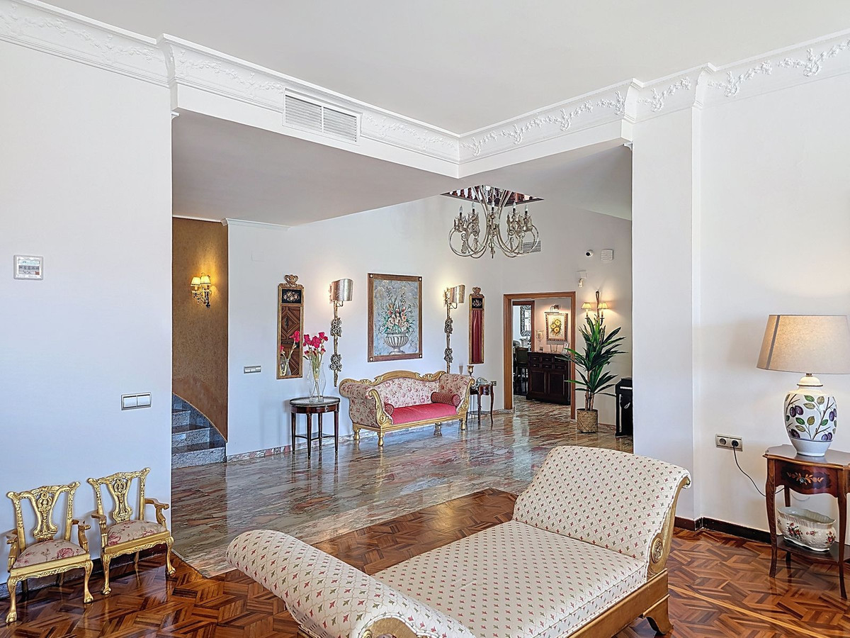 Upstairs, accessible via a beautiful marble spiral staircase or a comfortable lift, there are four elegant bedrooms, three bathrooms and several dressing rooms, surrounding an open hall that gives the villa an airy and luxurious character.