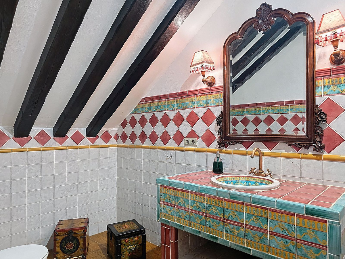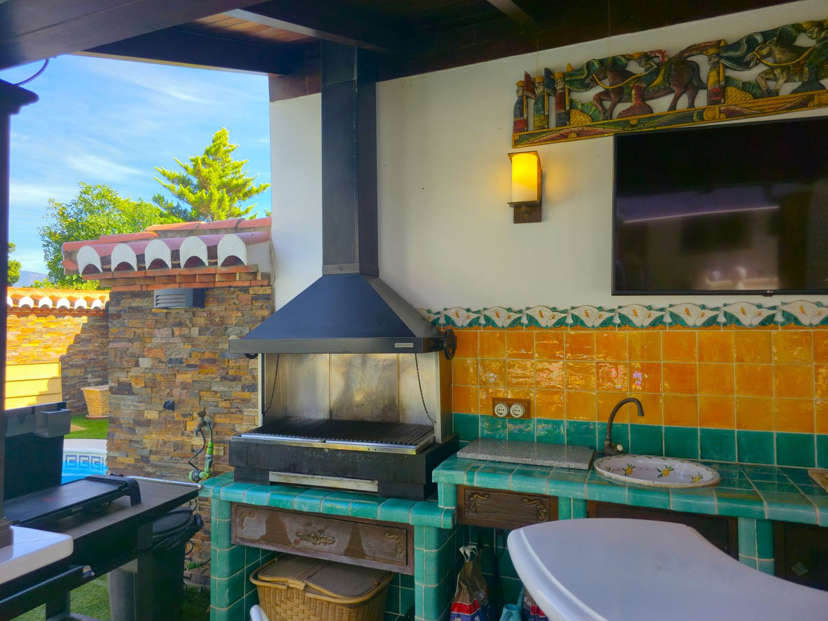 The ground floor offers an oasis of relaxation with a fully equipped entertainment room with bar and billiards, a gym, additional kitchen, bathroom and a spacious workshop. There is also a large garage with space for four cars. The property is equipped with solar panels, is sold fully furnished and is ready to move into, down to the smallest details.