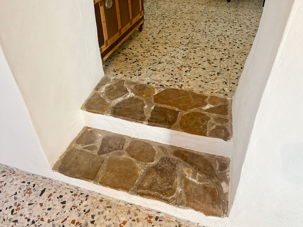The property offers two generously sized double bedrooms with wooden blinds and mosquito nets, accessed via a hallway with high ceilings. The property is in perfect condition and finished with high-quality materials, with careful preservation of original rustic features. The property benefits from mains water and electricity connections, plus a 300L solar hot water tank for energy efficiency. Set on a 102m² plot with a front terrace offering beautiful countryside views and a practical storage shed.