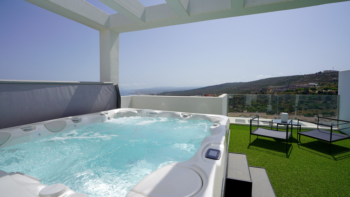 This beautifully furnished 3-bedroom semi-detached house is located in the sought-after Bahía de las Rocas area of Manilva, perfectly positioned between Sotogrande and La Duquesa. Set within a secure gated community, this south-facing property offers breathtaking panoramic views of the Mediterranean Sea, Gibraltar, and even the northern coastline of Africa.