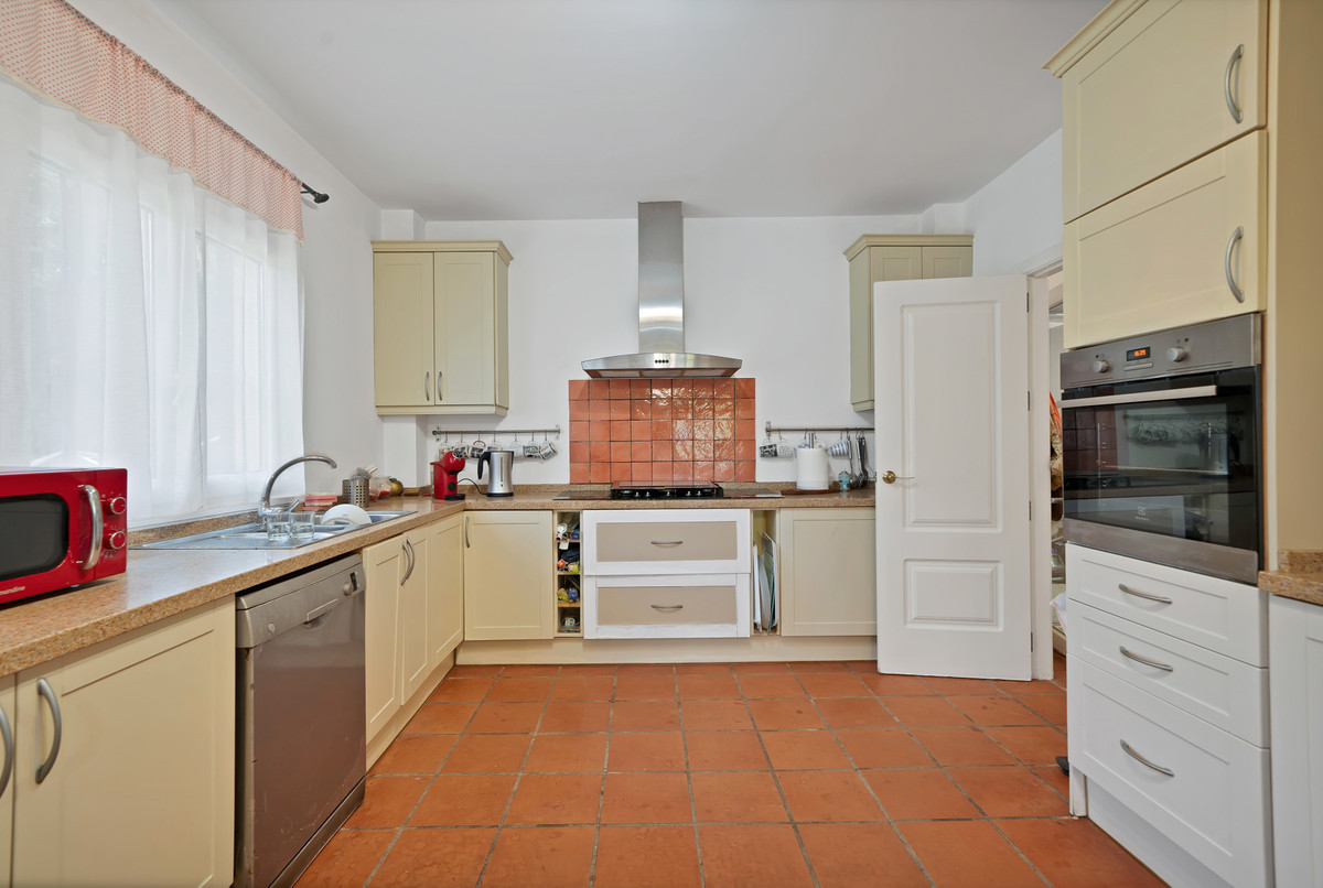 The garage has capacity for one or two vehicles, and at the rear, there is a pergola under which another two can be parked.