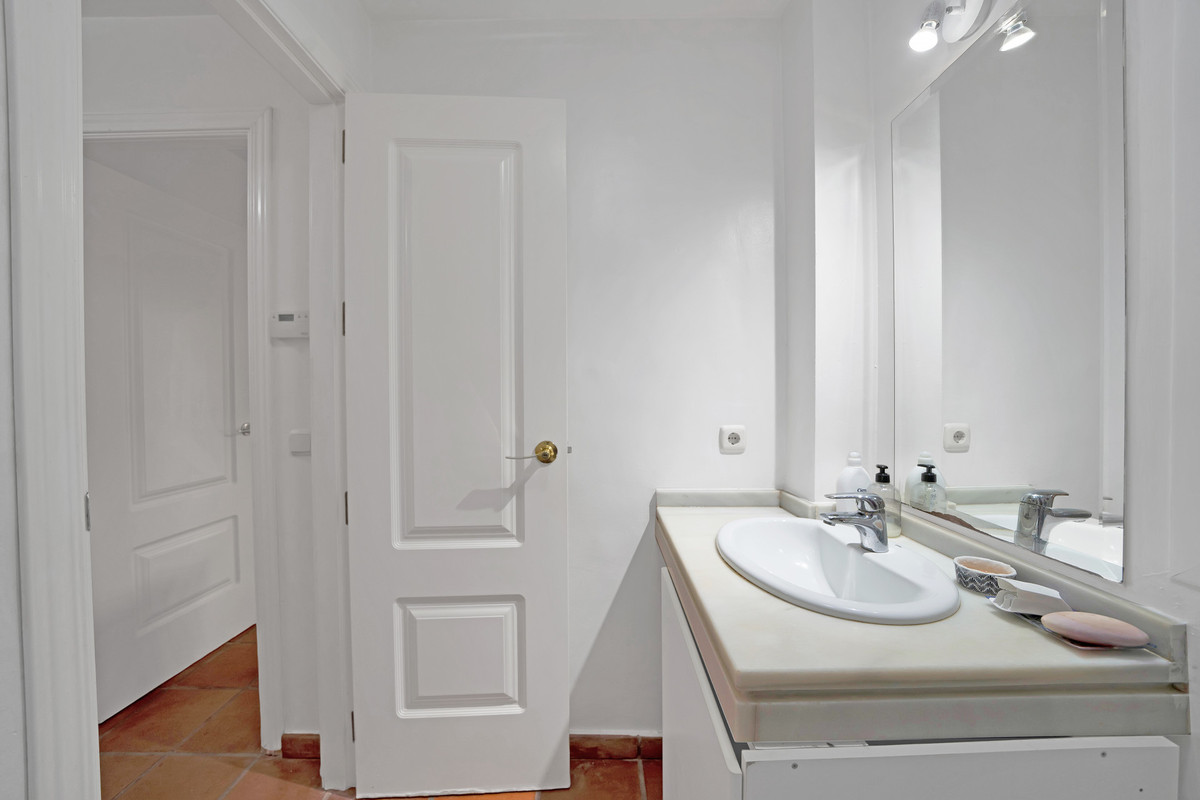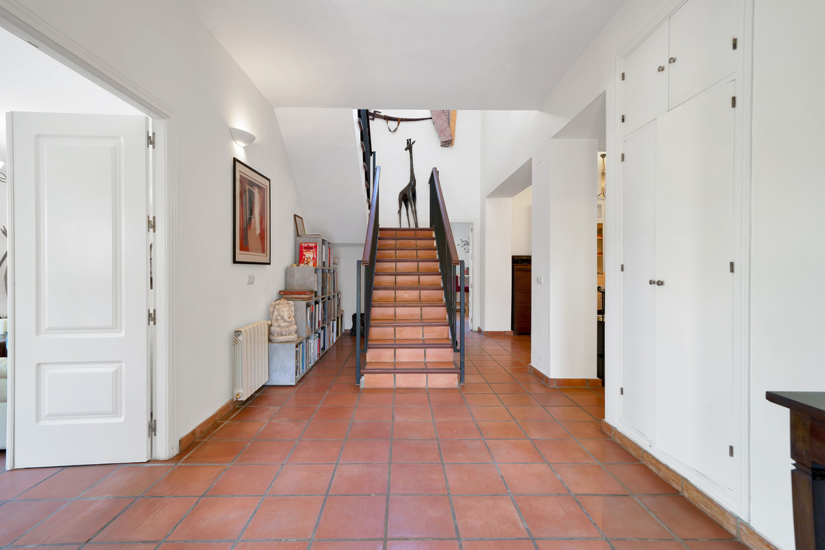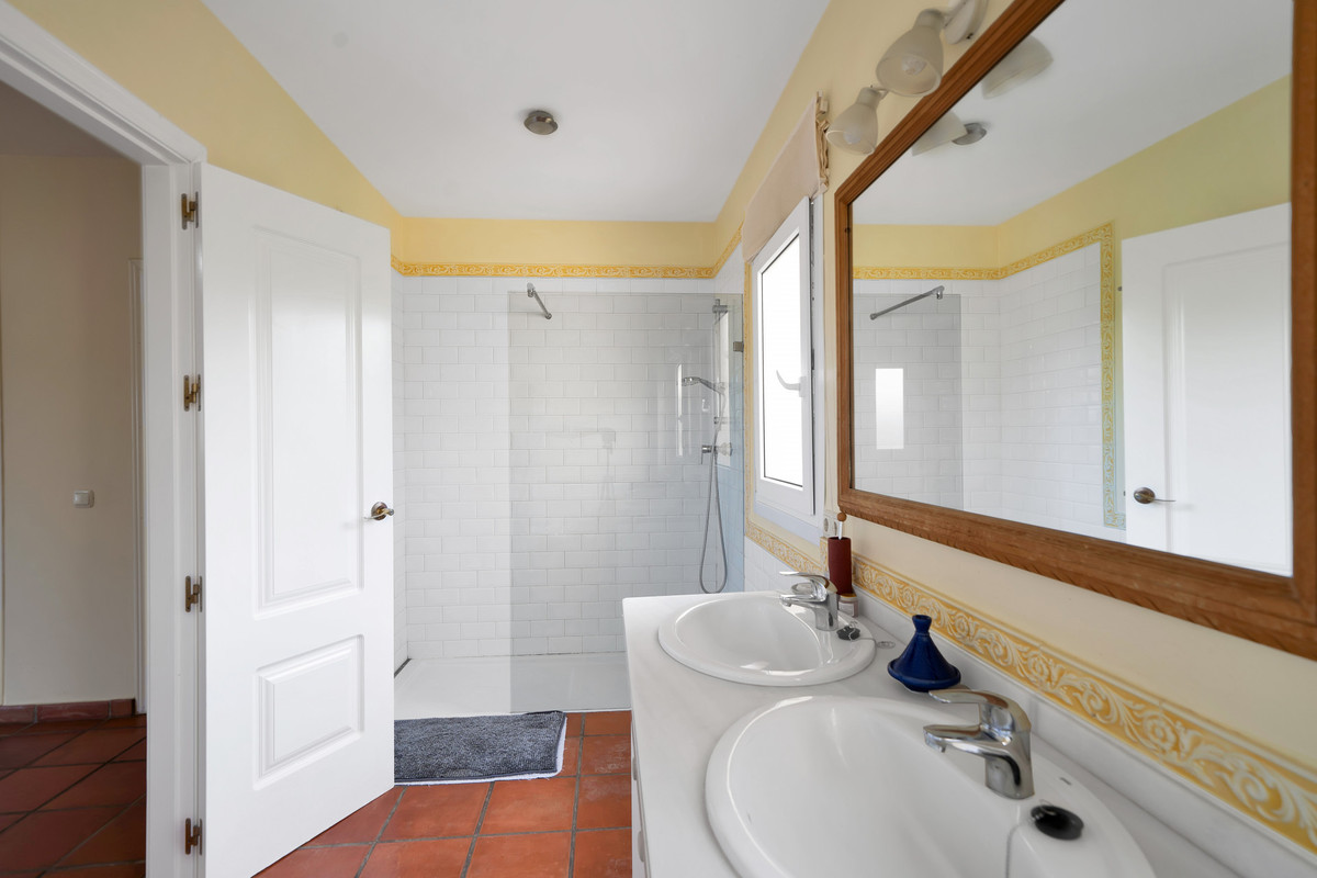 On the first floor, there is the master bedroom with an en-suite bathroom and a large terrace from which you can enjoy panoramic views. There are two more bedrooms, one with its own terrace and a full bathroom.
