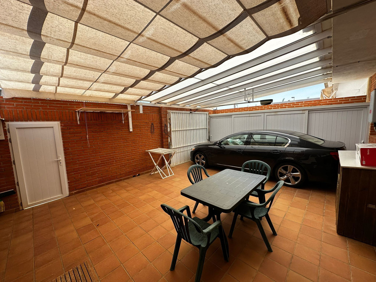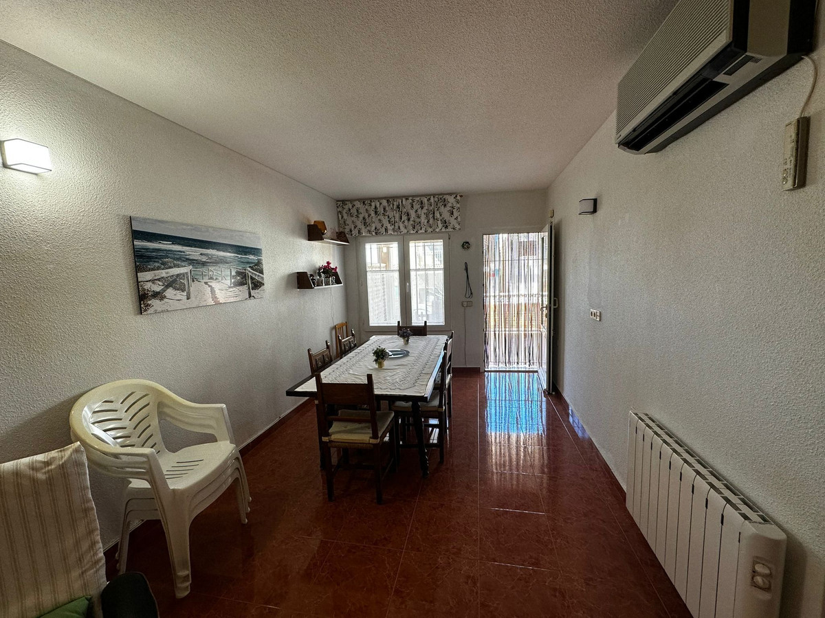 This townhouse has two entrances and is about 110 sq m with four bedrooms, two bathrooms, living room and kitchen. There are also two large terraces on the ground floor. The house is also equipped with solar panels, the current owner sells the electricity.