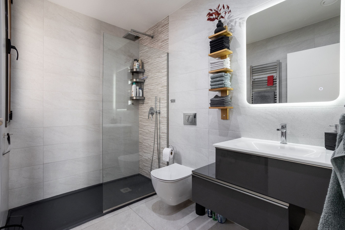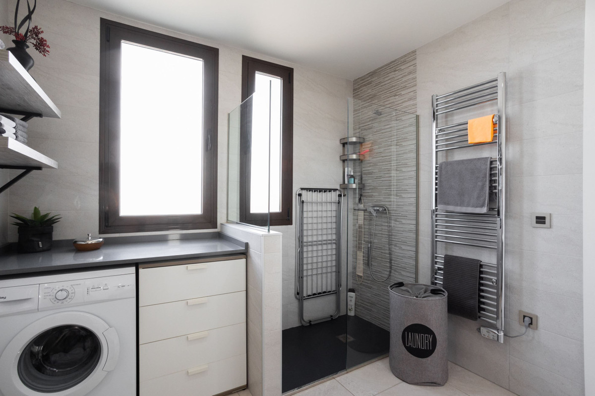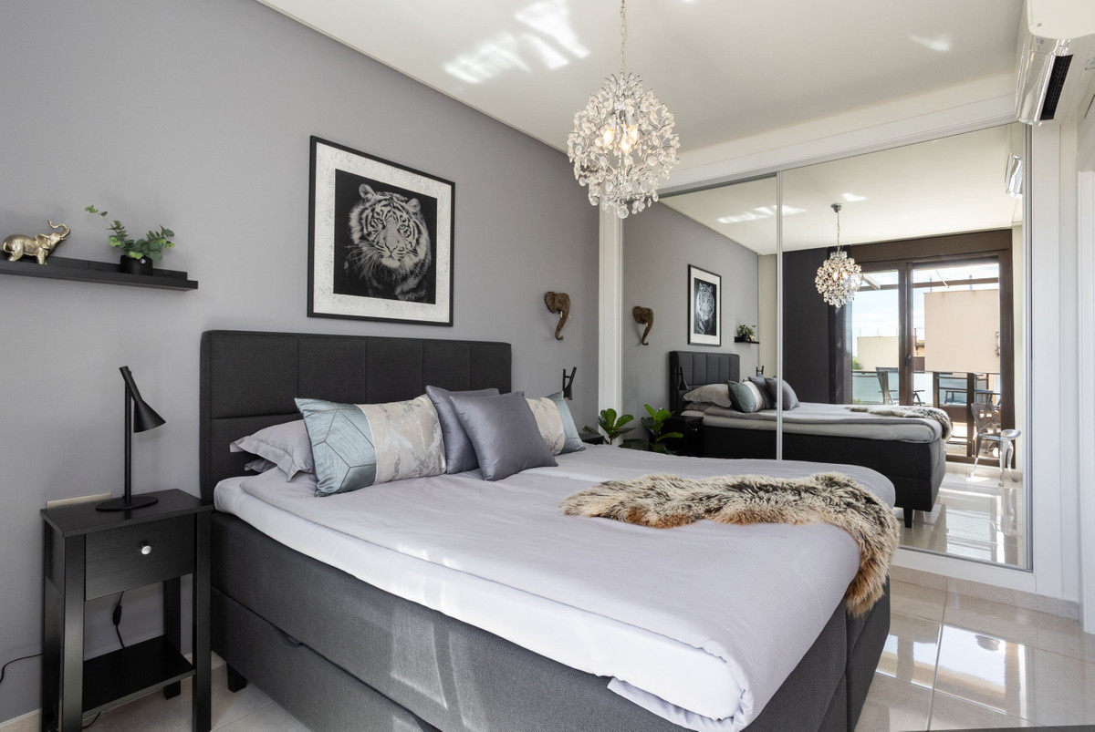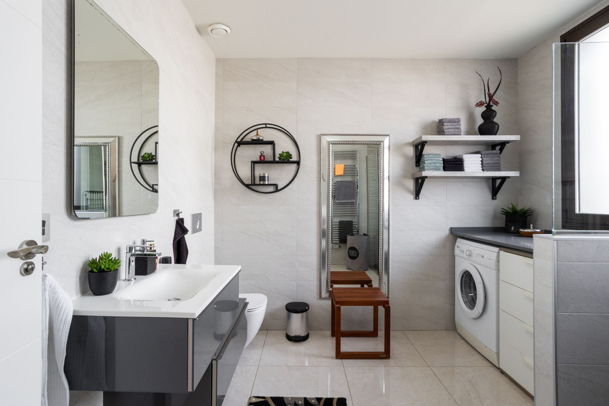 The townhouse has several patios: two on the ground floor, a balcony and a large roof terrace in a sunny location. The roof terrace is equipped with both an outdoor kitchen and shower, making it an obvious place for relaxation, dinners and social moments. There is plenty of space here for lounge furniture, a dining set and sun loungers.