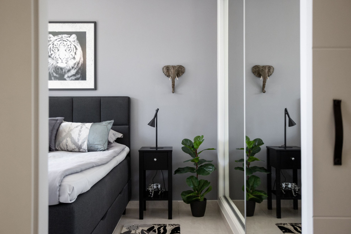 The two bedrooms are bright and peaceful with built-in wardrobes for good storage. One of the rooms is currently used as a study but could easily be decorated as a guest room or children's room. Both bathrooms are fully tiled and equipped with a shower, toilet and commode.