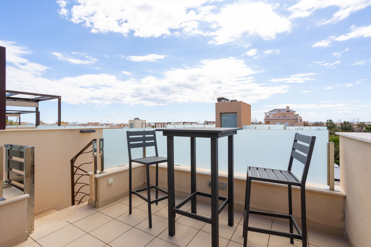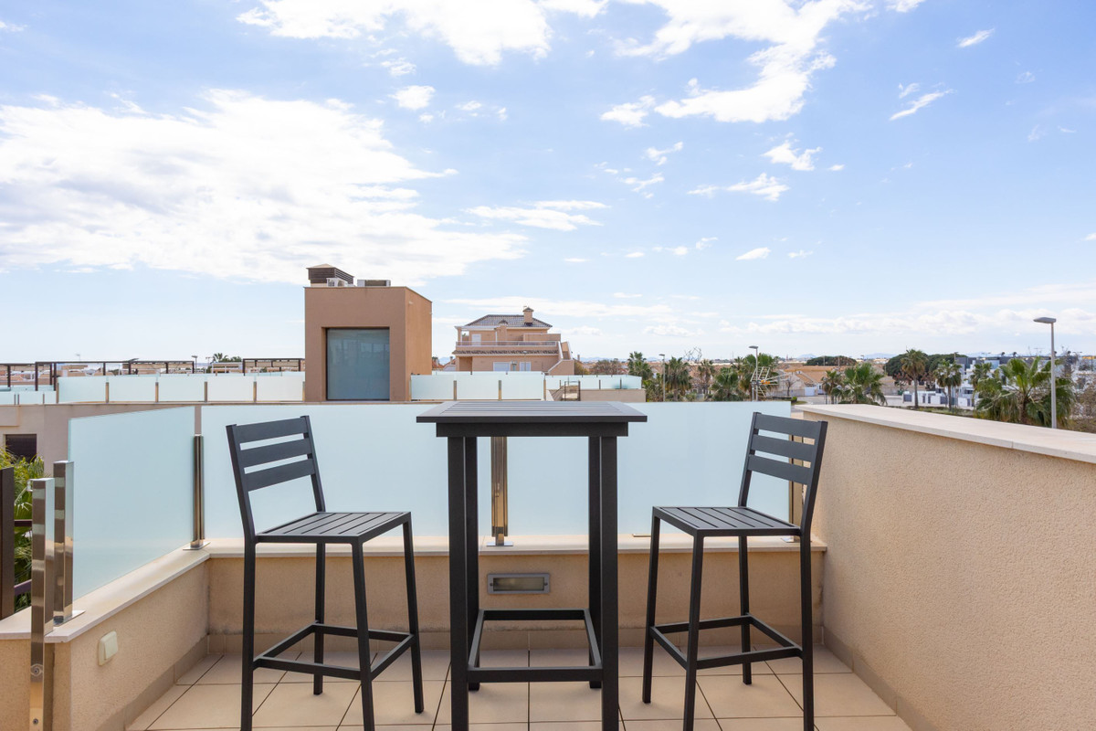 Here you live close to lovely beaches and a wide range of services with shops, restaurants and cafes. There are padel courts in the area and for those interested in golf, several fine golf courses are a short drive away. Torrevieja and other popular resorts are easily reached by car.