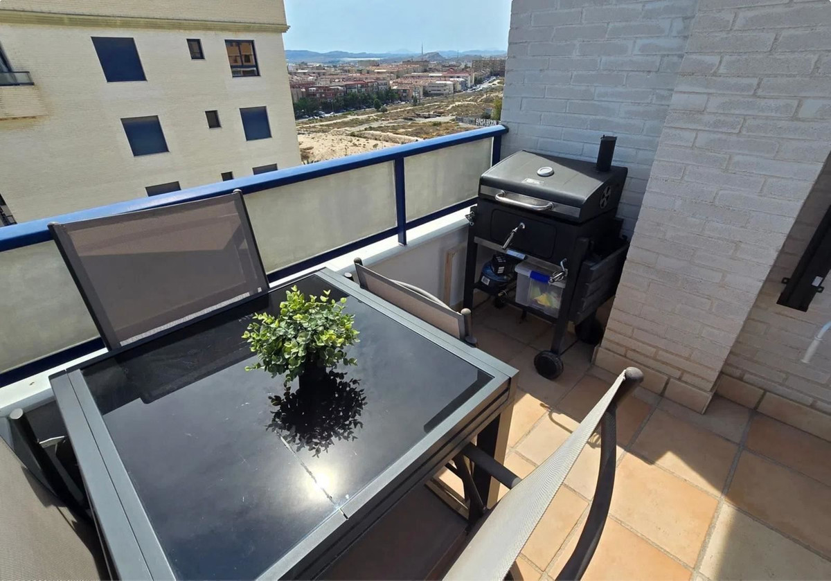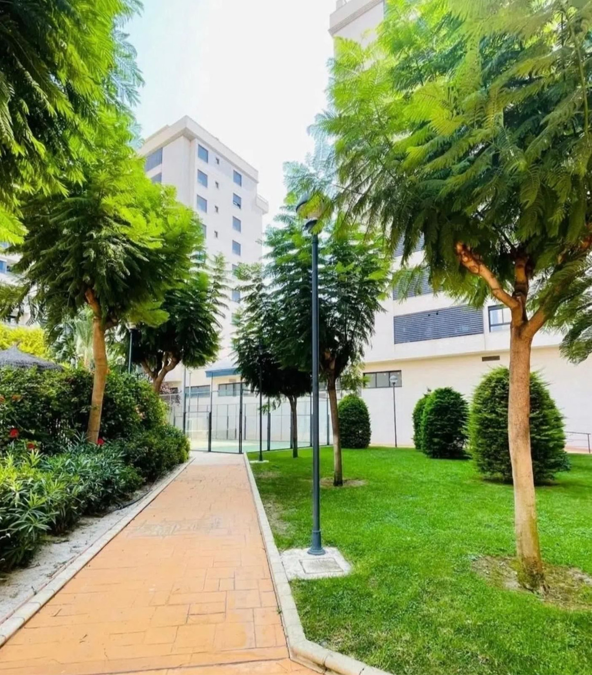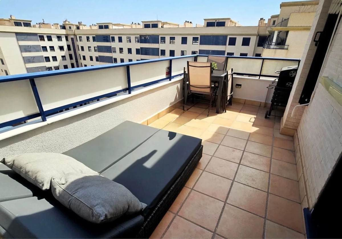 Penthouse with terrace, pool and paddle court – high and sunny location Discover this bright and well-kept penthouse on the ninth floor, perfect for those who want to live comfortably with everything within reach. The property has a built area of 83 m² (69 m² living area) and offers two bedrooms with built-in wardrobes, a bathroom and an airy living room with access to a terrace and balcony in both east and west orientation - ideal for enjoying the sun all day long.