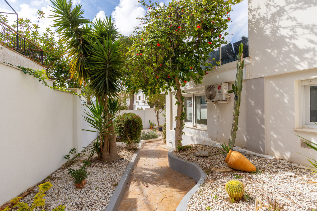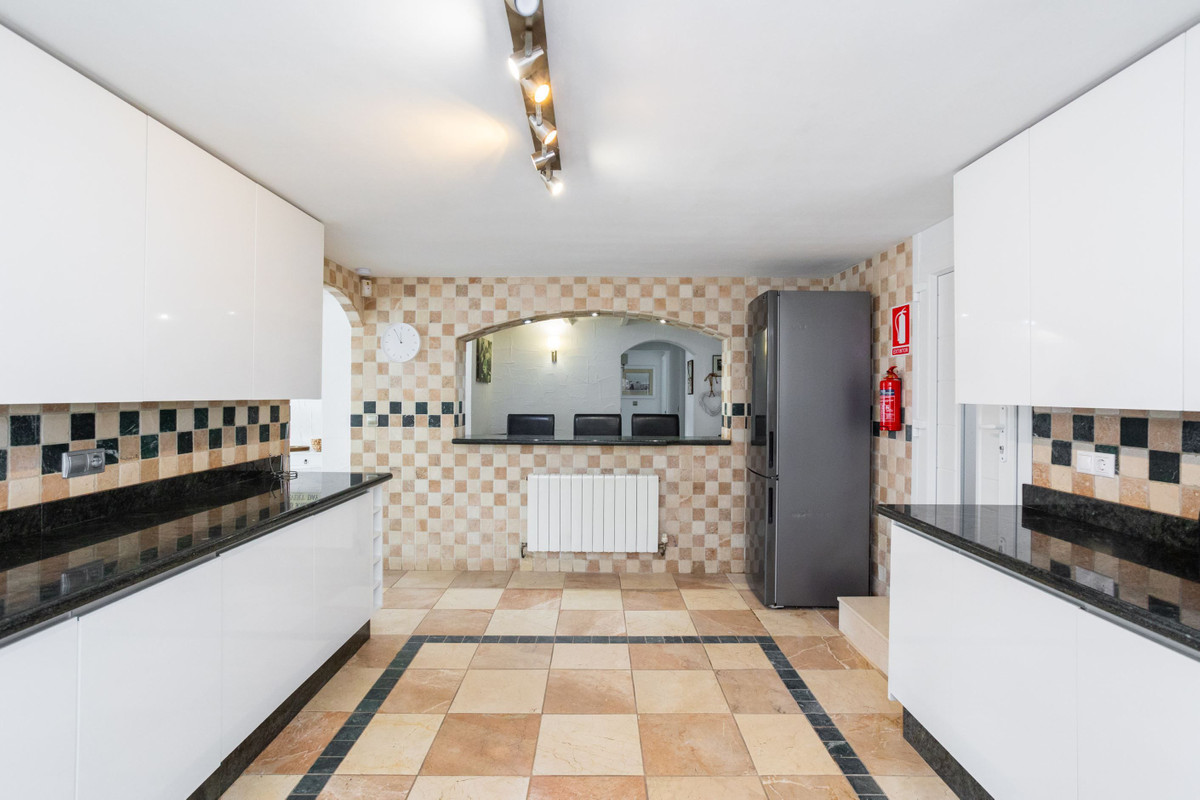 The villa is about 486 sq m in total and consists of two houses and is currently arranged as a private villa, but it is possible to arrange it as two separate townhouses with a shared garden. The villa has an inviting feel with lightly furnished areas. In addition, there are several patios and terraces and a large and spacious private pool in a nice location.