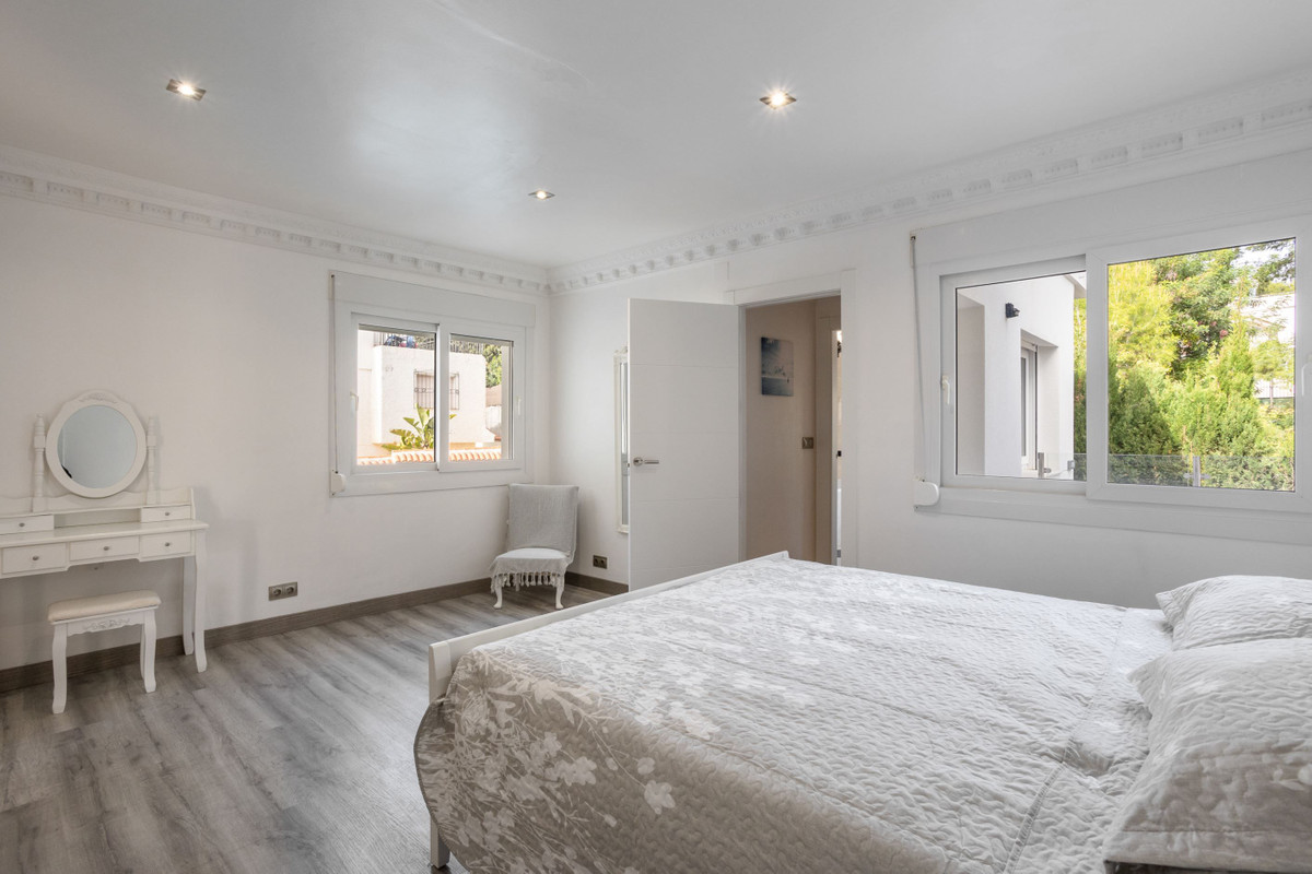Villa with large areas and private pool near the beach A warm welcome to the popular area of Campoamor and this well-proportioned villa with an attractive location and many positive features, such as large windows, generous light flow and a homely feel. Here you live close to beautiful beaches, nice natural areas and a wide range of shops, restaurants and cafes. For those interested in golf, there are several well-known and well-maintained golf courses a short drive away.