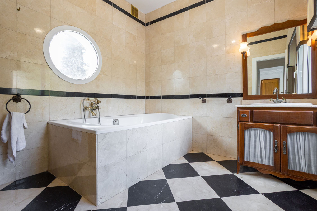 One floor up there are a total of seven bedrooms with pleasant light flows and nice locations, four bathrooms, one of which is en suite to the master bedroom, and a living room. The master bedroom also has a large walk-in closet.