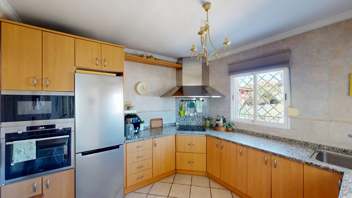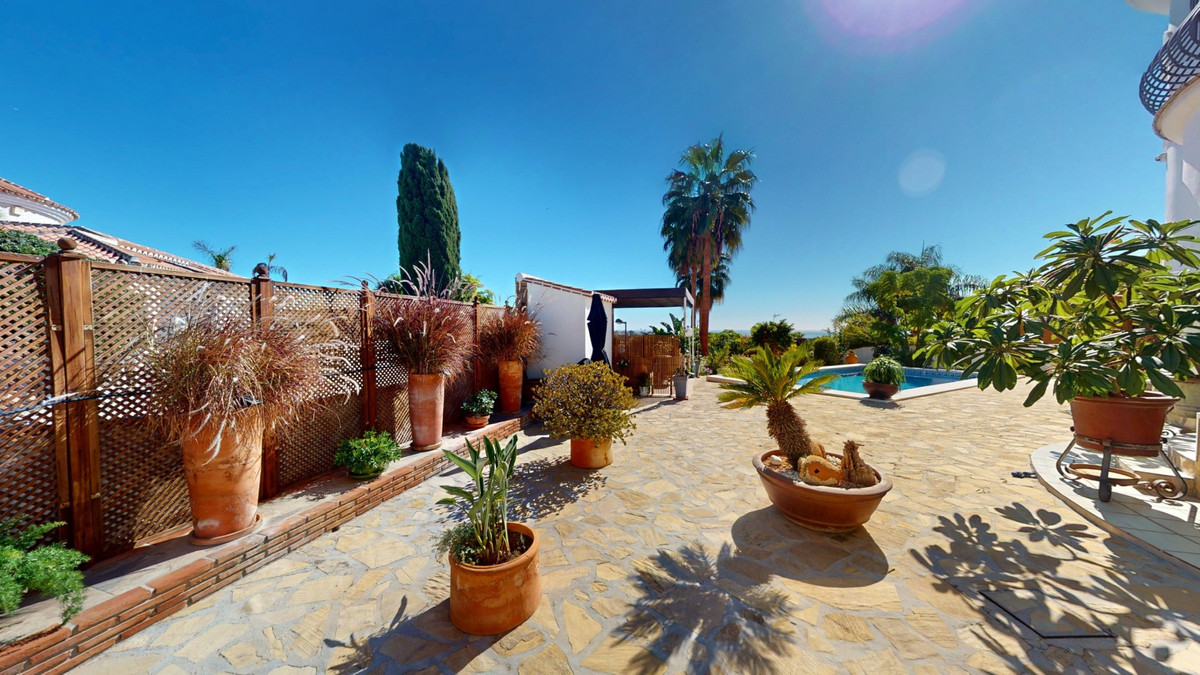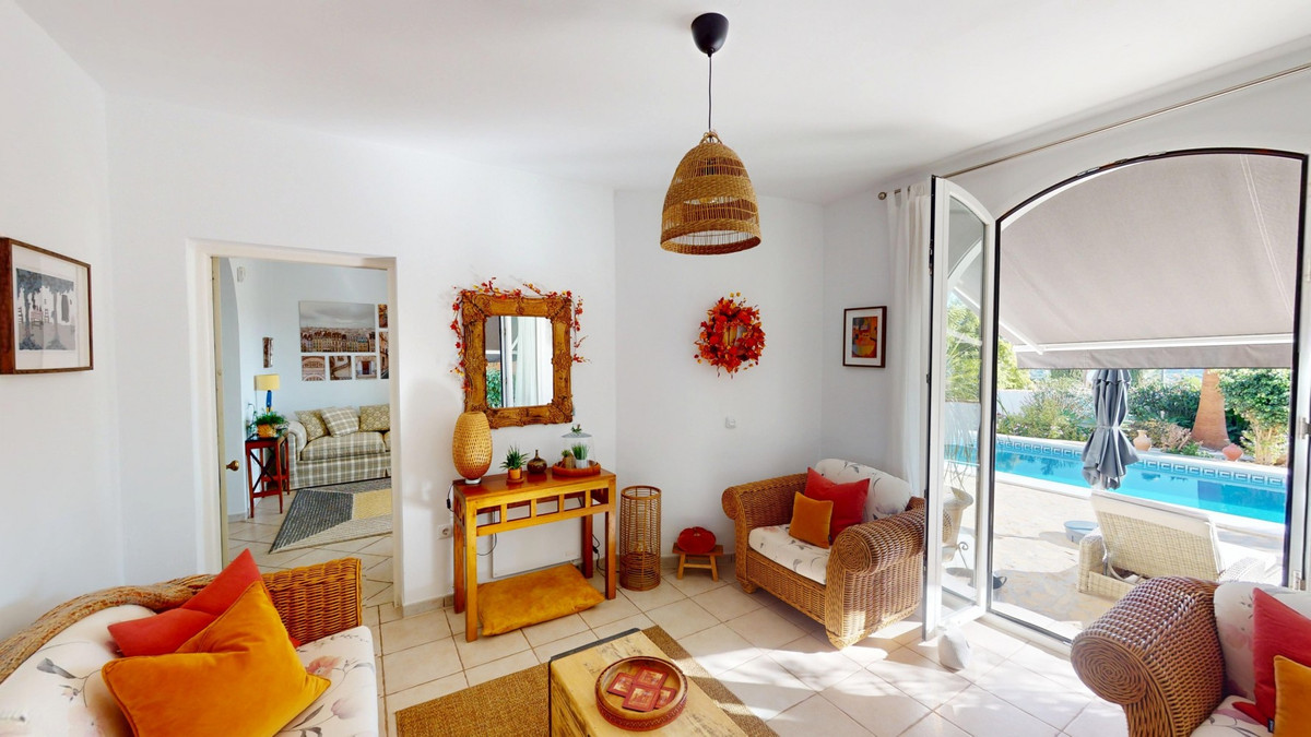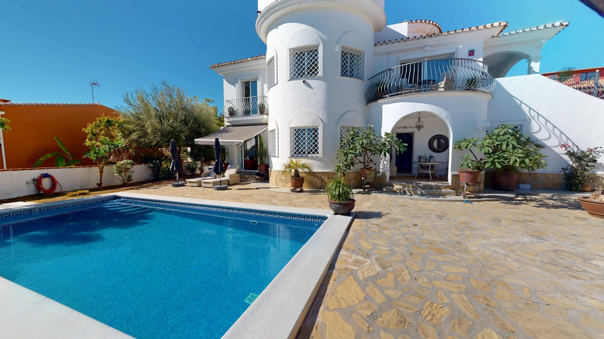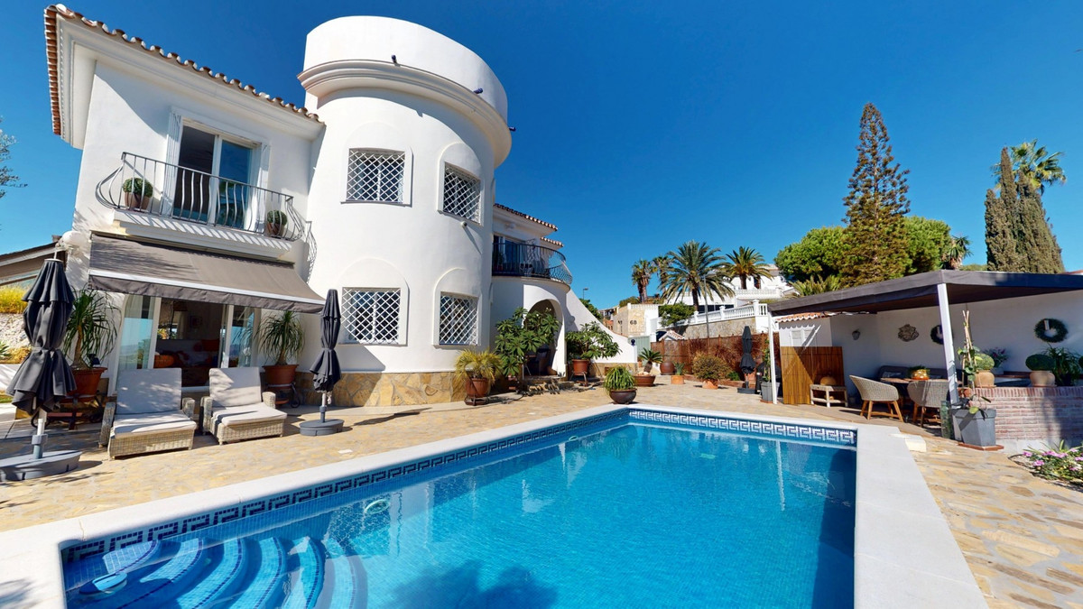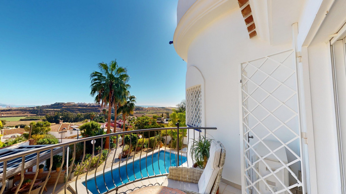 Step into a world where luxury meets tranquility in this beautiful detached villa, located in the quiet residential area of El Capitán, near Torre del Mar and Almayate on the east coast of Málaga. The location is ideal for those seeking peace and privacy while staying close to all amenities. Within just a few minutes you can reach the beaches of Almayate and Torre del Mar, where youll find charming restaurants, shops, and lively seafront promenades. Málaga city and the airport are only about 35 minutes away by car. Set on a private 811 m2 plot, the villa offers 310 m2 of elegant living space, surrounded by a low-maintenance garden enclosed by a wall for complete privacy and security. A private gate gives access for vehicles, and the outdoor area features a sparkling swimming pool, a spacious covered terrace for relaxing in the shade, and a charming dome-shaped seating area perfect for enjoying a drink or a good book. Inside, the home impresses with generous spaces and natural light. The entrance hall leads to a double garage with additional storage. On the ground floor, youll find a large living room with an adjoining sitting area and wide glass doors that open to the pool and garden, as well as a bathroom and a bedroom ideal for guests. Upstairs, the heart of the home unfolds: a bright open-concept space combining the kitchen, dining, and living areas. Sunlight streams through large windows, creating a warm and inviting atmosphere for both relaxed family time and elegant entertaining. The fully equipped kitchen features stylish wooden cabinetry, granite countertops, and garden views. From the living room, you can step onto a large balcony with stunning views of the Mediterranean Sea. This floor also includes two bedrooms, a spacious bathroom, and a separate toilet. A terrace facing the street can also be accessed from this level or via an external staircase, offering extra outdoor space for gatherings or quiet evenings. At the top, a roof terrace crowns the villa, offering panoramic views of the sea, the mountains, and the surrounding countryside a perfect spot to enjoy sunsets and the serene Andalusian evenings. This villa combines elegance, comfort, and Mediterranean charm a true retreat where every day feels like a holiday. We would be delighted to present this dream property to you soon, either in person or through a virtual viewing. Because this world is unique just like our Axarquía. In Andalusia. On the Costa del Sol. Here, on the sunny side of life.