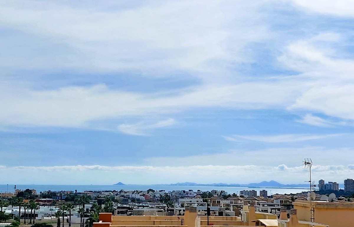 Discover this 103 m² corner penthouse with an impressive 106 m² private sun terrace, ideal for enjoying the sun and the sea views. It also has an 8 m² terrace (also with sea views), a porch at the entrance and a spacious 26 m² underground parking space.. . The property offers 2 bedrooms and 2 full bathrooms (one en suite), a spacious living-dining room with a French kitchen. It has air conditioning and ducted heating, already installed.. . Located in a gated community with 2 communal swimming pools, green areas and a children's playground, in Lomas de Cabo Roig, one of the most sought-after areas of Orihuela Costa. Walking distance to supermarkets, bars and restaurants, and only a 5-minute drive from the beaches in the area.. . Everything you need to enjoy the sun, sea and comfort in one place.. . Contact us and come and see it!