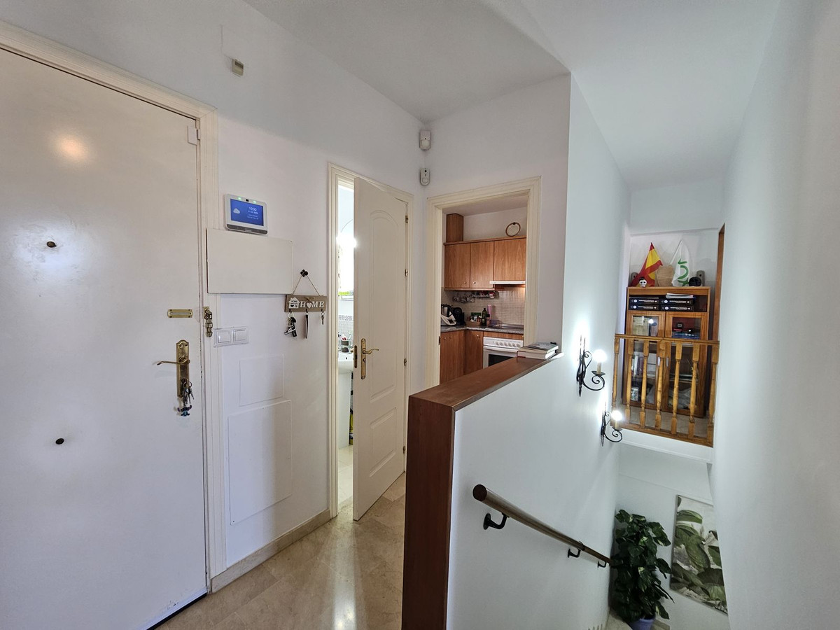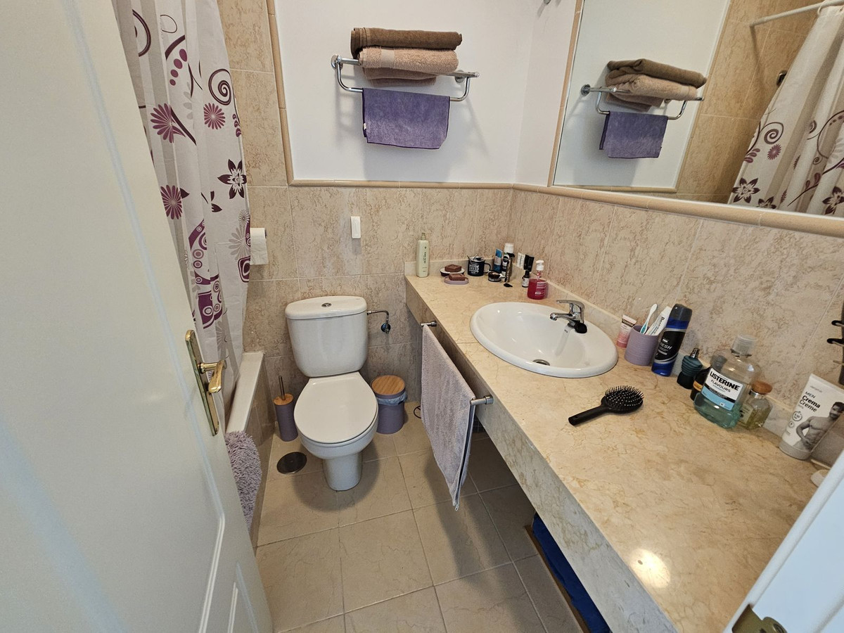 Entrance from the parking is on the lower level of the property. On the lower level you find two bedrooms and they both have an own en-suite bathroom. Two bedrooms are large and walk out onto a South-West facing terrace. There is a large communal pool; there is also a kid's pool. The communal pool area has got showers.