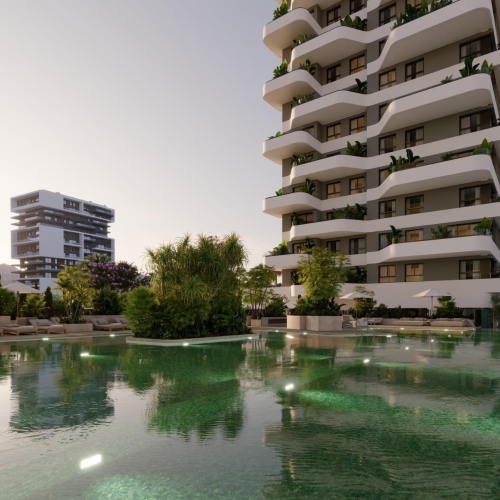 Buyers can choose from one- to three-bedroom apartments, ranging from 64 to 275 square meters, all featuring private terraces. Additionally, there is a single exclusive penthouse with a rooftop solarium terrace.