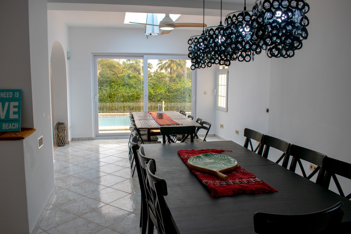 The spacious, verdant garden surrounds the house and features a charming private pool , perfect for enjoying the Mediterranean climate. It also includes a garage and a separate studio apartment within the grounds, ideal for guests, rentals, or as a private office.\n