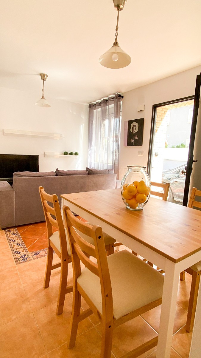 The spacious, open-plan living room connects to a front terrace, ideal for enjoying breakfast in the sun , while a practical utility room is located at the rear. The fully equipped kitchen, only eight years old, is in excellent condition. All rooms feature lined built-in wardrobes , white lacquered doors , and modern terrazzo and ceramic tile flooring.\n