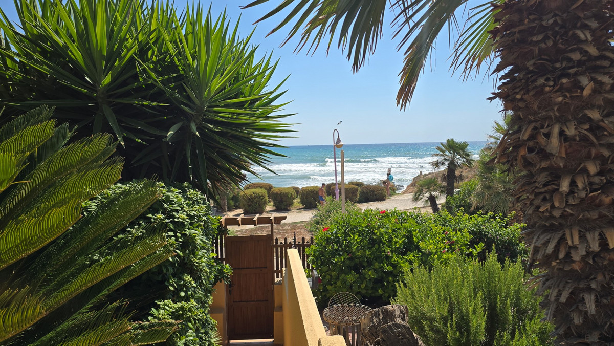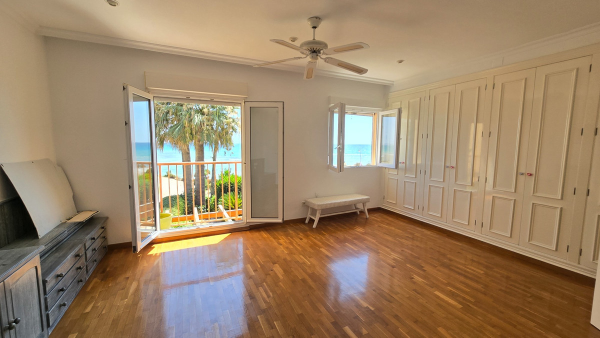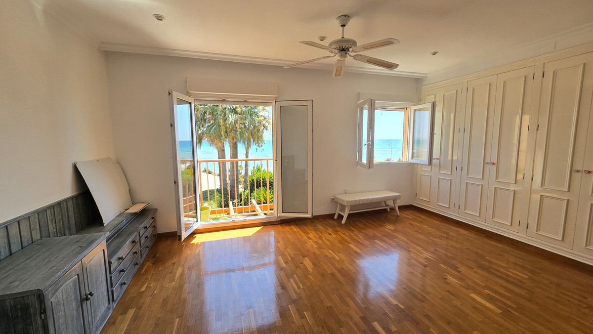 Discover this exclusive beachfront semi-detached villa in El Campello , located just 20 meters from Almadrava Beach , one of the quietest and most privileged areas of the Costa Blanca . This elegant property of 300 m² built and 280 m² usable , distributed over 3 floors , offers a perfect combination of luxury, comfort, and natural surroundings . Enjoy frontal views of the Mediterranean Sea from its spacious terraces and balconies, with an easterly orientation ideal for contemplating the sunrise.\n