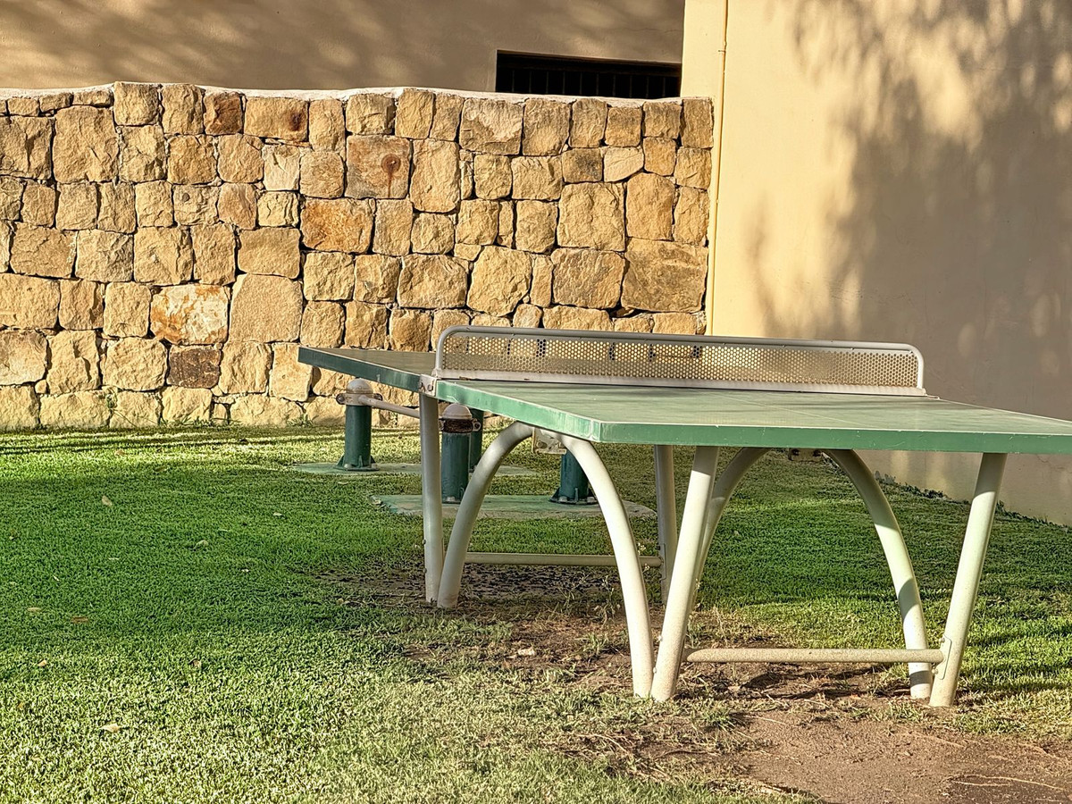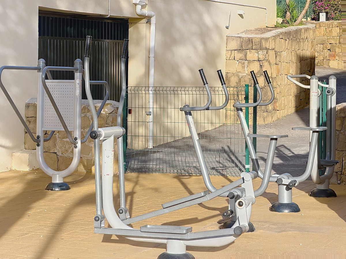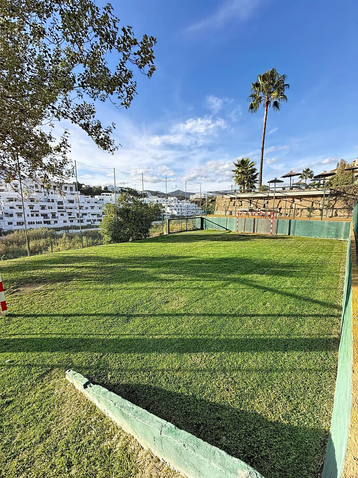 The gated community offers outstanding facilities: landscaped gardens, football and padel courts, communal barbecue area, outdoor swimming pool, children's playground, ping-pong area, and open-air gym.