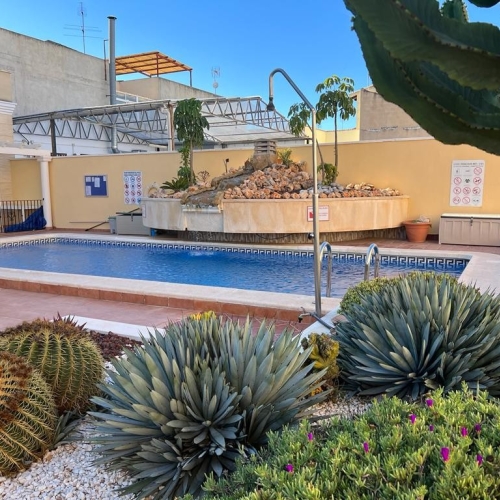 Semi-detached Bungalow in Residential Complex. It has a garden its entrance with possibility of parking and in the back it has a porch with barbecue that gives access to the living room of the house.The house has on the ground floor room with fireplace, room with built-in wardrobe, toilet with shower and kitchen with gallery. On the first floor it has a full bathroom and two bedrooms with fitted wardrobes, one of them with a balcony and the other with a beautiful terrace. On the top floor there is a terrace-solarium with unobstructed views. The urbanization has a communal pool and the bungalow is freshly painted and ready to move into.